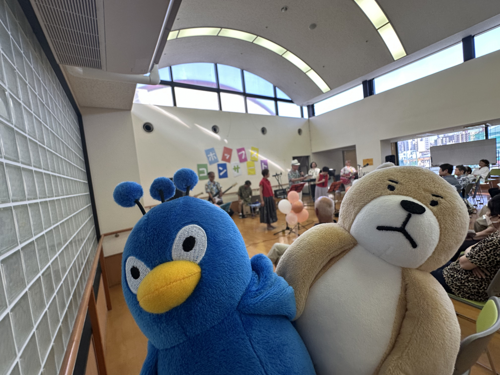 奉優会のマスコットである「クジャペン(左)」と「しば先輩(右)」も一緒にコンサートを楽しみました。