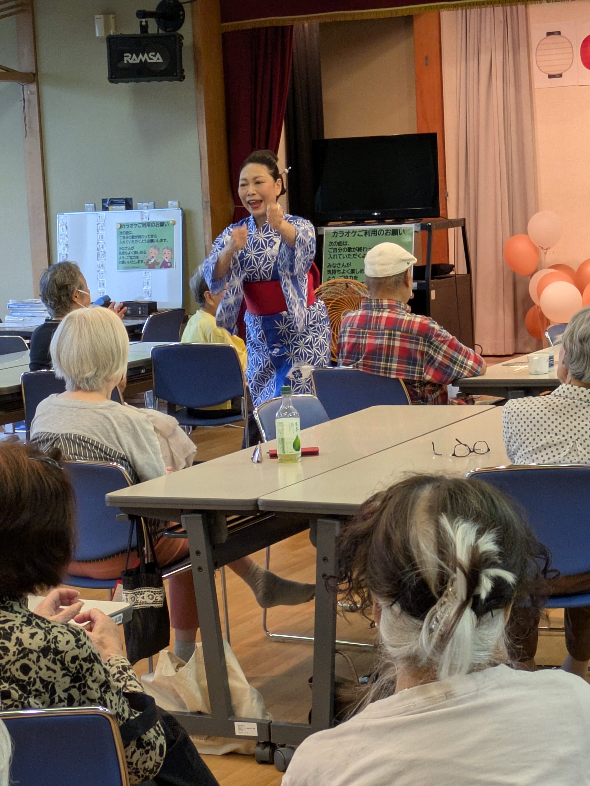 利用者の皆さんも参加された歌は大東京音頭、踊りは九州炭鉱節でした。