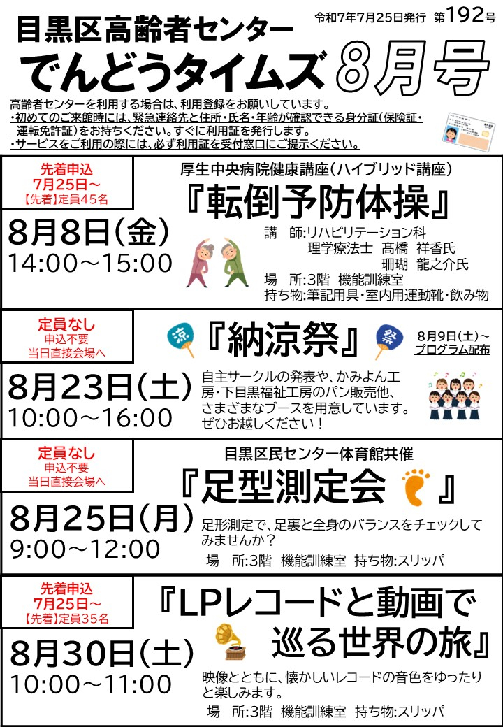 2025.07.23 お知らせ 2025.8月でんどうタイムズを公開いたします。 Tweet シェアする 前の記事 2025.07.23 お知らせ 2025.8月オンライン講座予定表を公開いたします。 次の記事 2025.07.22 お知らせ 【目黒区高齢者センター】スマホ講座「ChatGPTを使ってみよう」を開催しました 一覧へ戻る