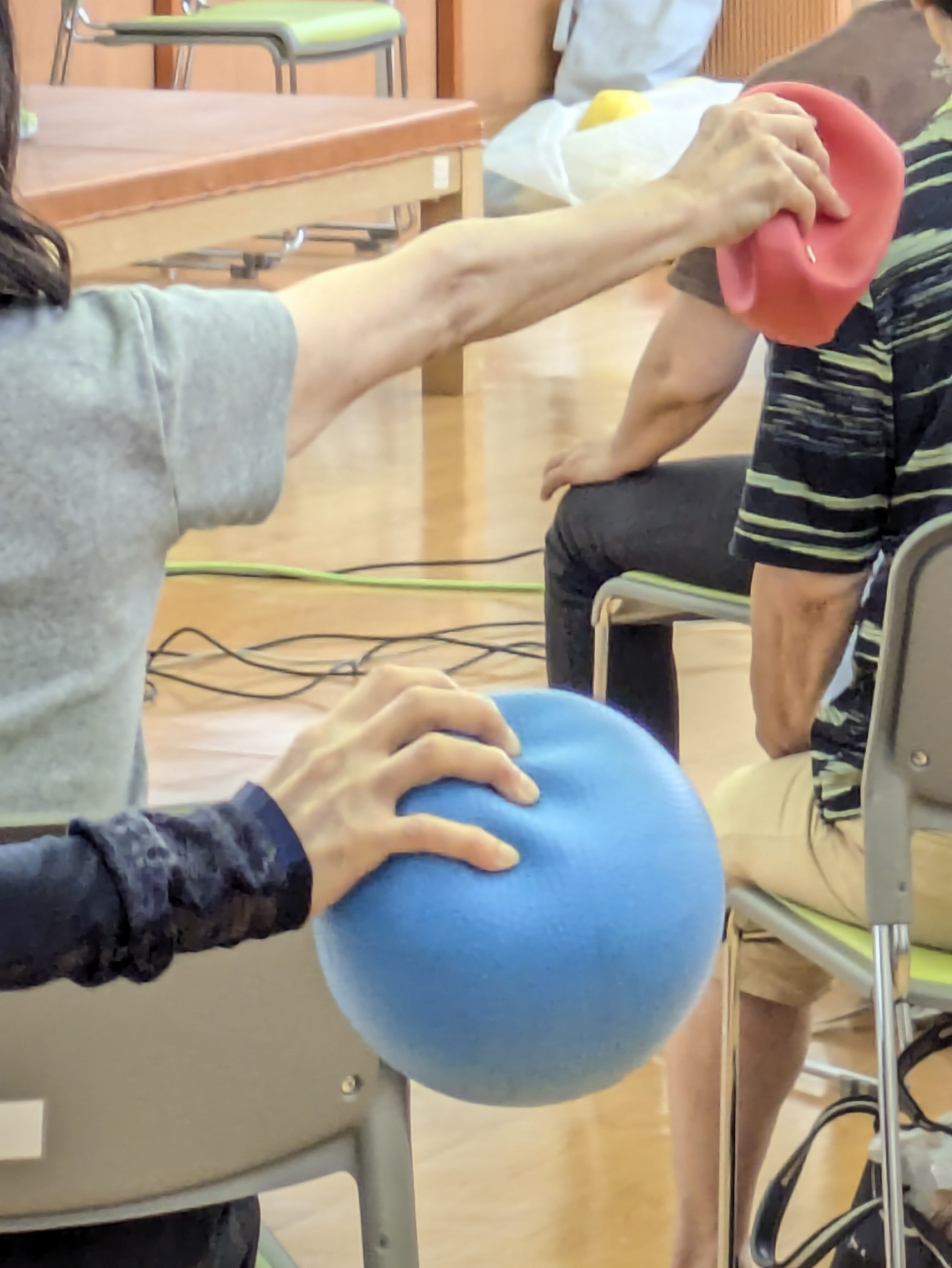 掴んだり、背中を押し付けたり、左右に持ち替えたり、腕をあげたり、様々な動きで身体全身を動かしました!