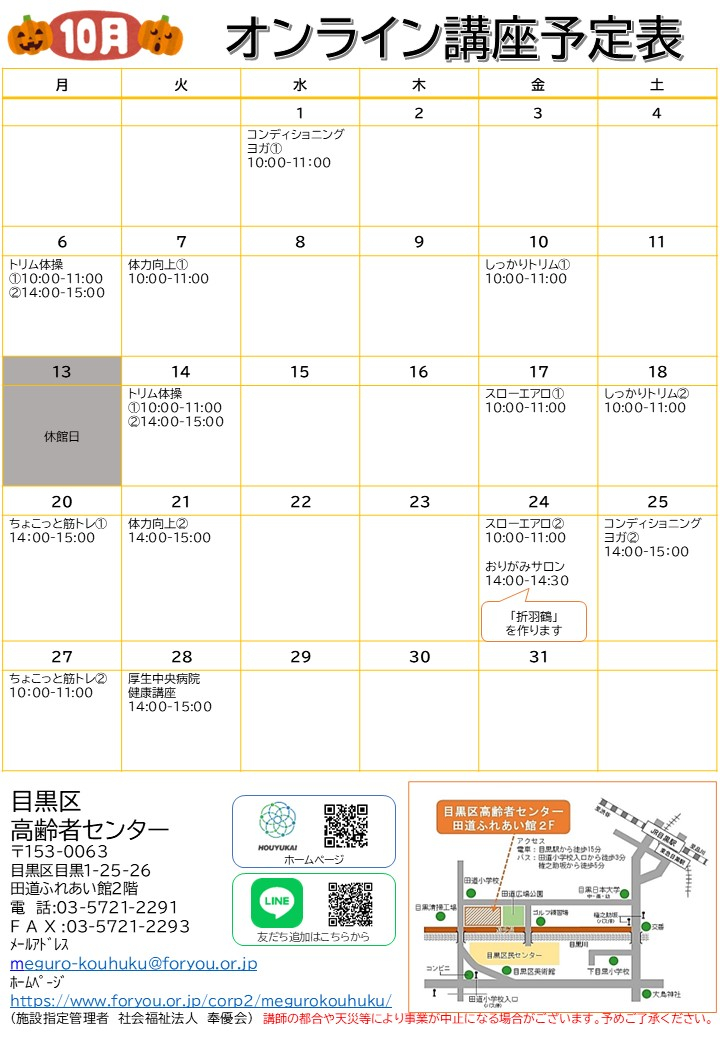 2025.09.22 お知らせ 2025.10月オンライン講座予定表を公開いたします。 Tweet シェアする 前の記事 2025.09.25 お知らせ 【目黒区高齢者センター】各地域の包括支援センターの展示♪ 次の記事 2025.09.22 お知らせ 2025.10月でんどうタイムズを公開いたします。 一覧へ戻る