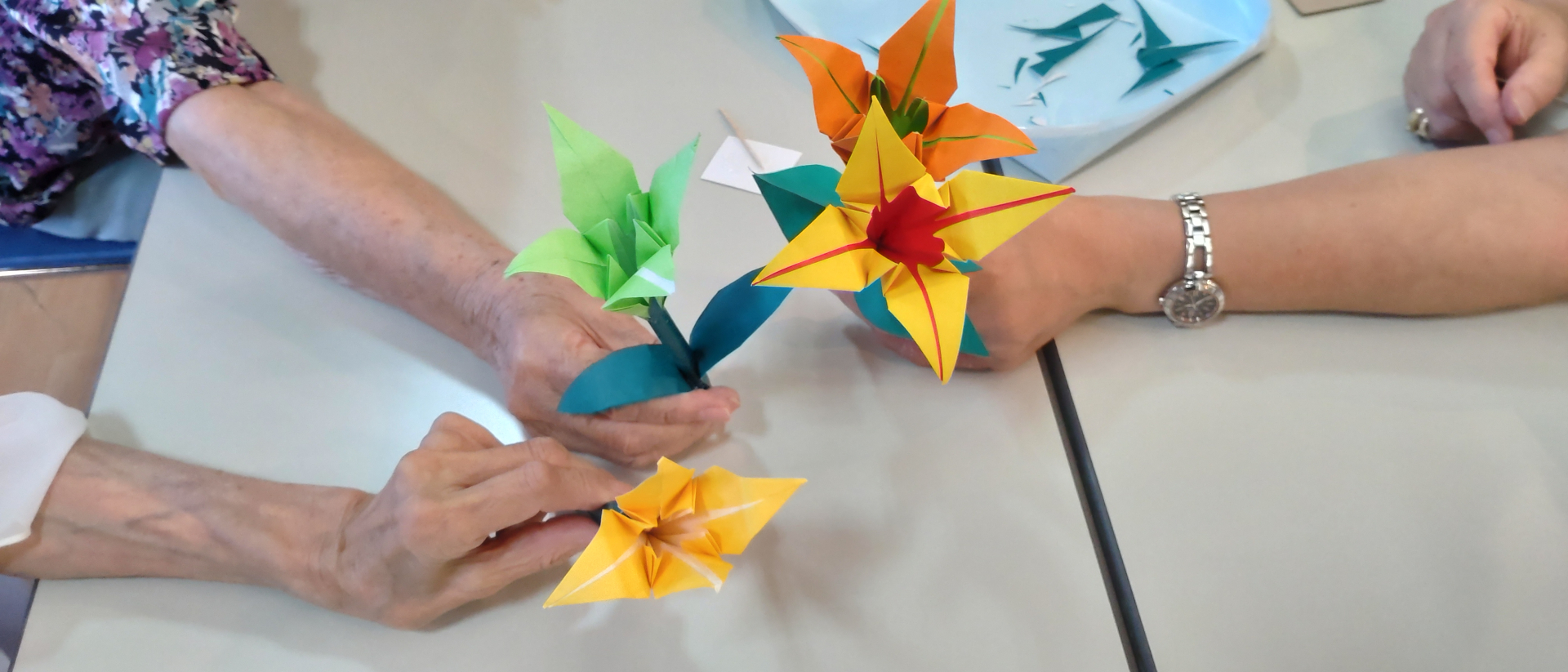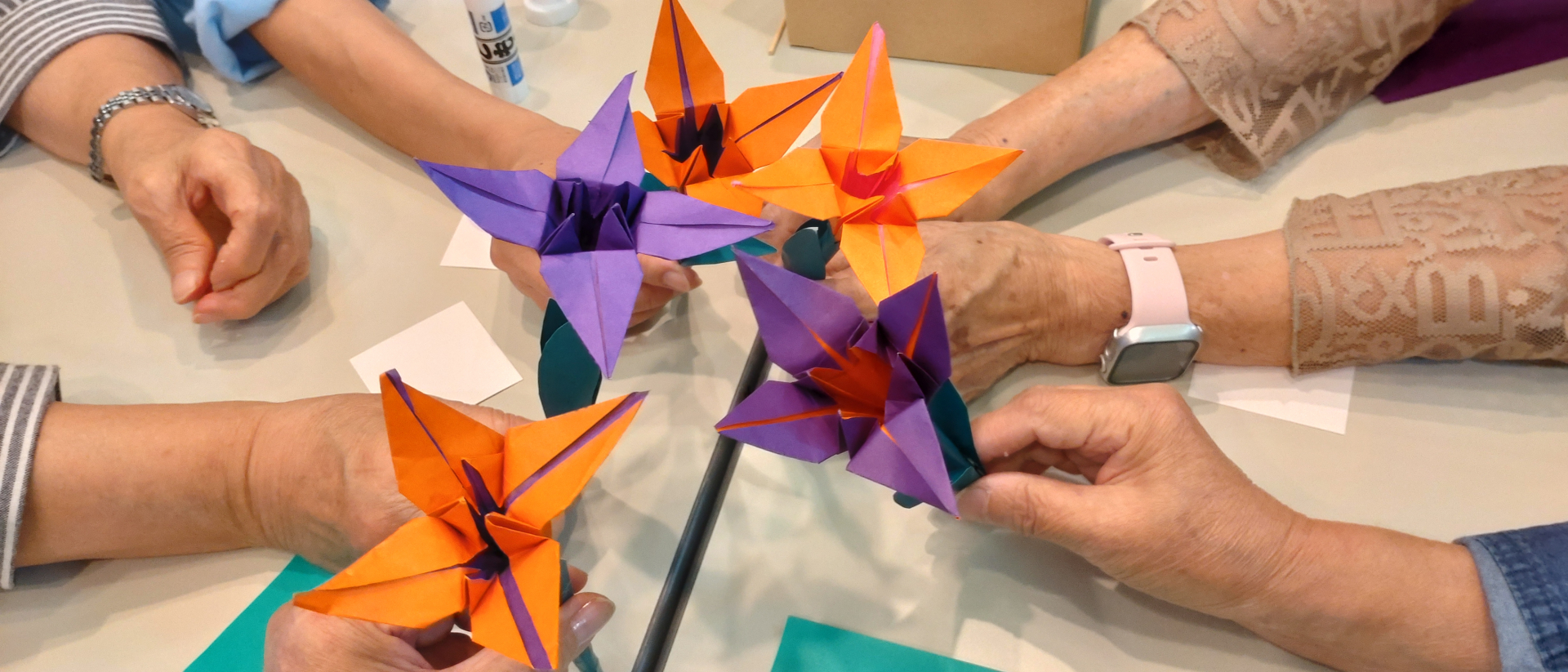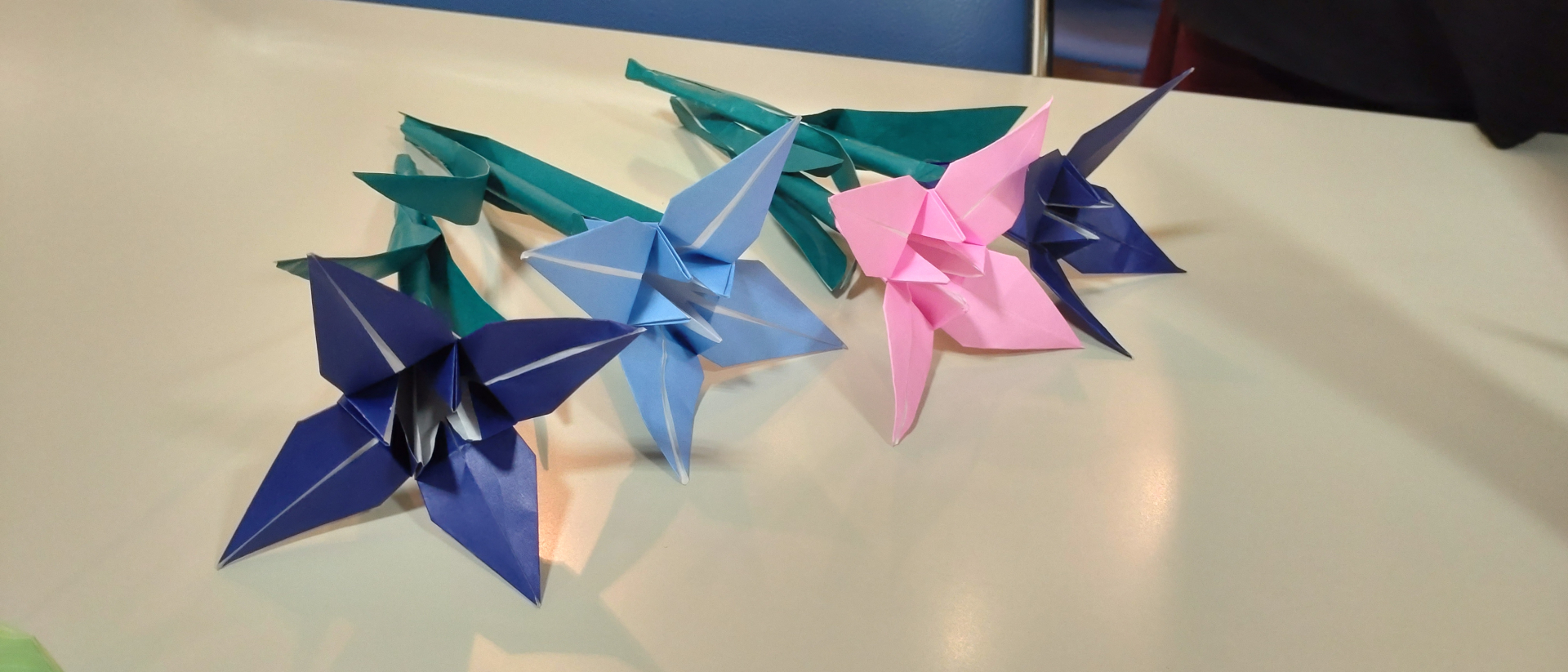 今日は佐藤先生の折り紙講座を交流サロンで開催し、ユリを折りました。