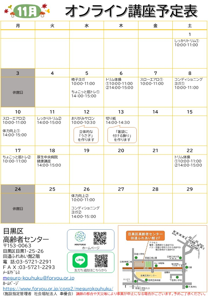 2025.10.23 お知らせ 2025.11月オンライン講座予定表を公開いたします。 Tweet シェアする 前の記事 2025.10.24 お知らせ 【目黒区高齢者センター】「魅せ色レッスン自分発見」講座を開催しました! 次の記事 2025.10.23 お知らせ 2025.11月でんどうタイムズを公開いたします。 一覧へ戻る