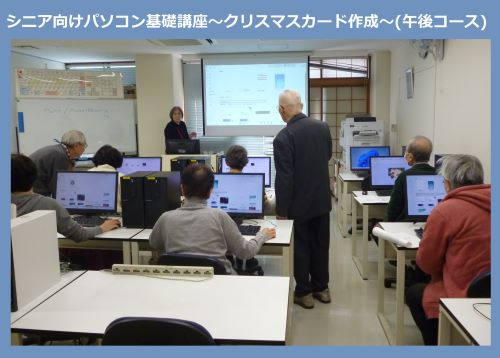 12月17日(水)・18日(木)、シルバー人材センターパソコン教室にて「シニア向けパソコン基礎講座~クリスマスカード作成~」を開催しました。