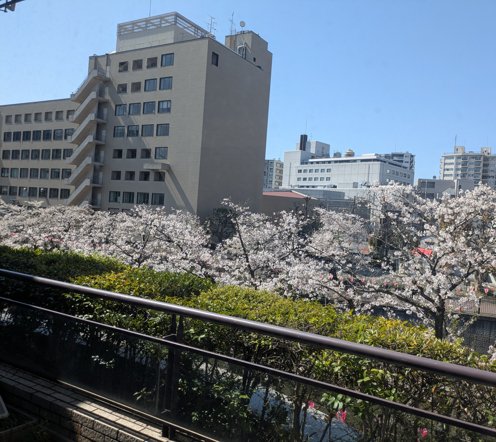 ↓こちらは踊り場からの眺め。いつもなら忙しい移動もこの季節はちょっとウキウキここからの眺めに得した気分( *´艸`)♪
