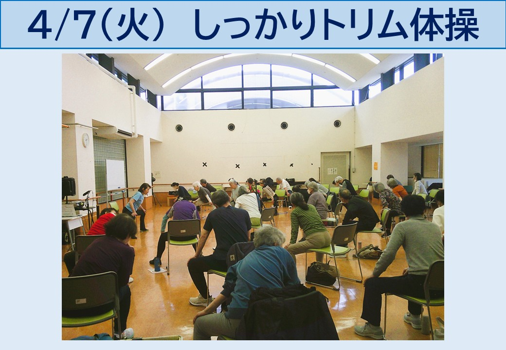 目黒区高齢者センターです。今日はしっかりトリム体操を開催しました。