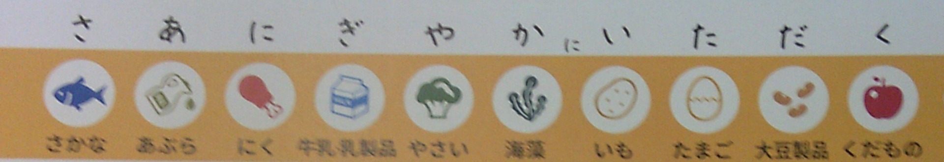 下の絵は、つい忘れがちな食品を語呂合わせにしたものです。