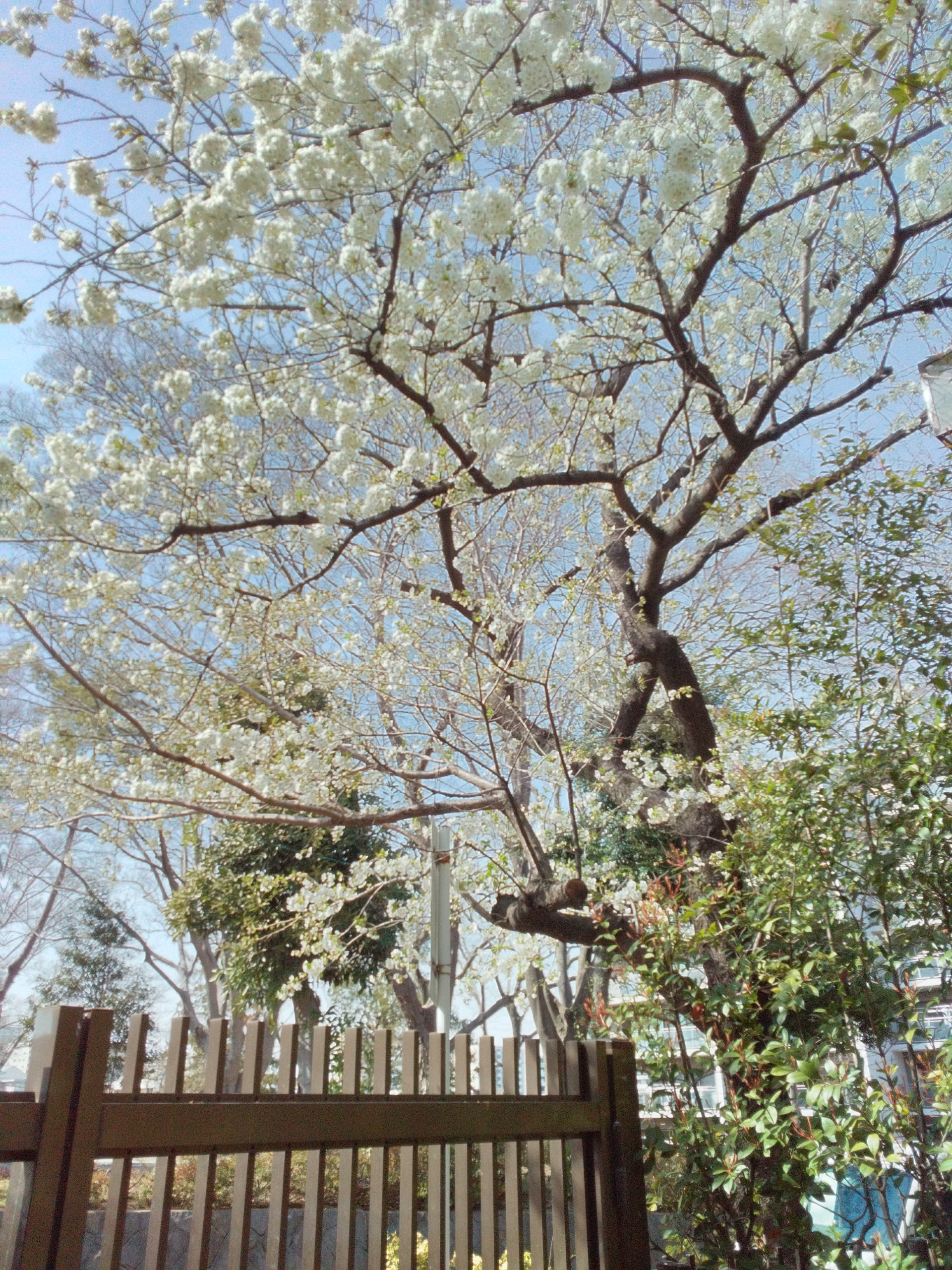 みどりの苑の中庭には「大島桜」という品種の桜が今満開を迎えております。