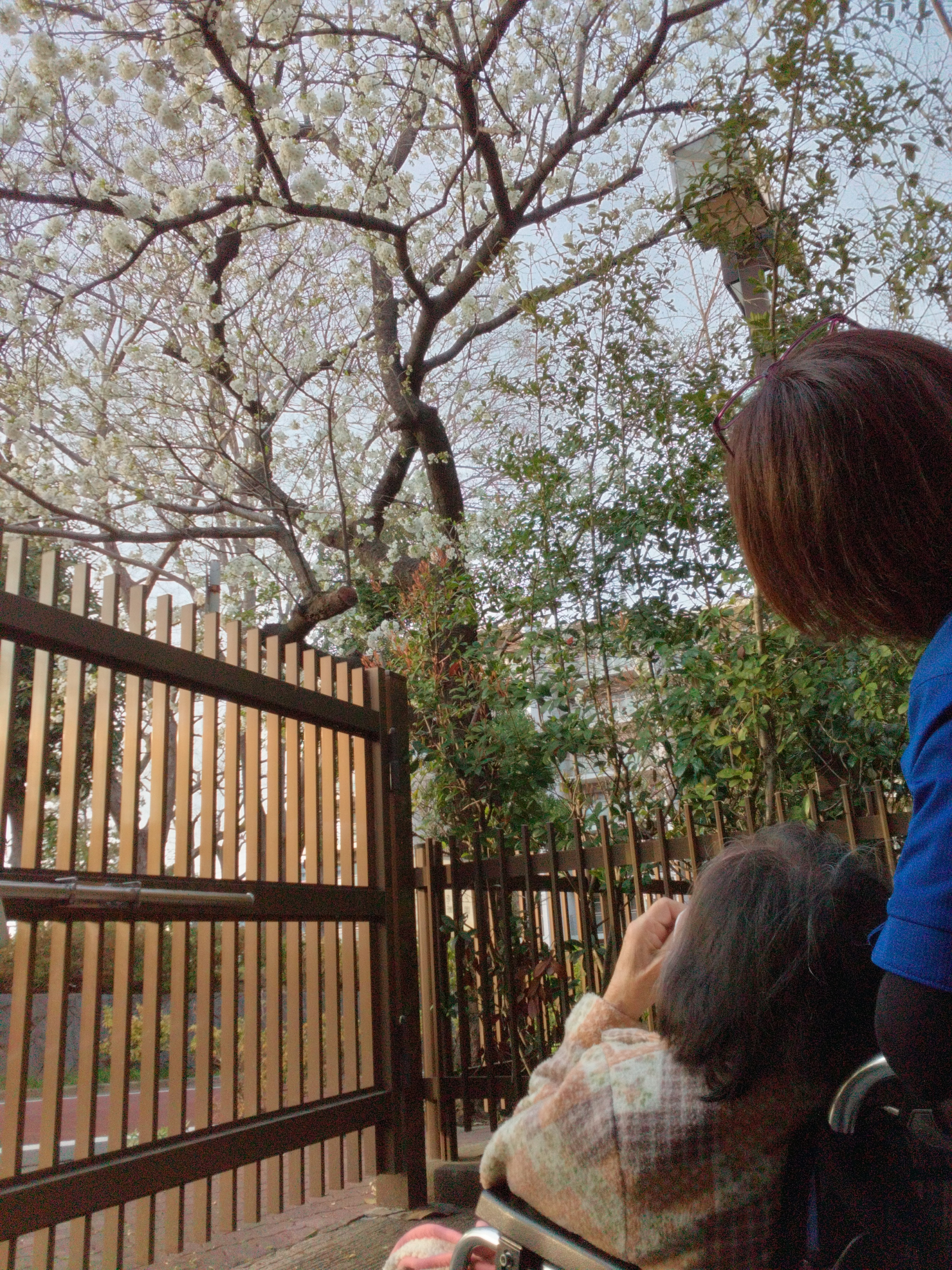 晴れてる日の帰る前に利用者のY様とお花見♪