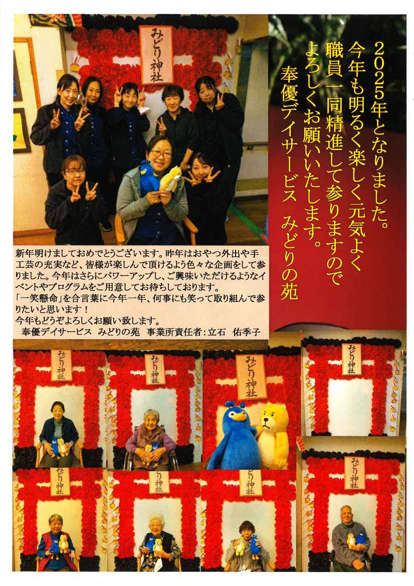 2025.01.04 お知らせ 【みどりデイ】みどり通信 新年号♪ Tweet シェアする 皆さま、こんにちは! 奉優デイサービスみどりの苑です! 2025年 みどり通信~新年号~が出来上がりました♪ 本日より配布しておりますのでご確認ください! みどりデイ 三浦 #奉優デイサービスみどりの苑 #奉優会 #みどり通信 #令和7年 #2025年 前の記事 2025.01.08 お知らせ 【みどりデイ】破魔矢制作♪ 次の記事 2025.01.04 お知らせ 【みどりデイ】2025年スタート♪ 一覧へ戻る