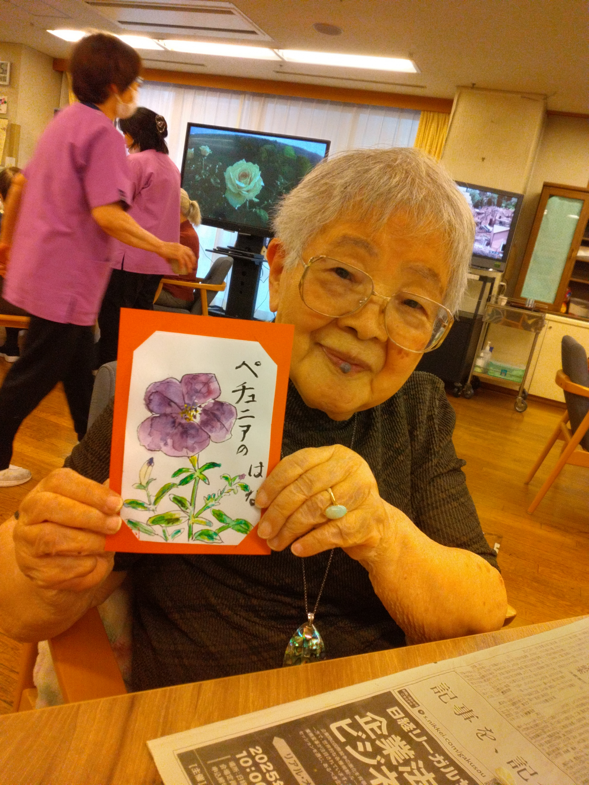 2025.06.14 活動報告 【みどりデイ】水彩絵手紙②♪ Tweet シェアする 皆さまこんにちは! 奉優デイサービスみどりの苑です! 前回の絵手紙の続きです♪ 完成した作品をご紹介します(^^) 次へ続きます♪ みどりデイA.N #奉優会 #奉優デイサービスみどりの苑 #水彩絵手紙 #6月 前の記事 2025.06.14 活動報告 【みどりデイ】水彩絵手紙③♪ 次の記事 2025.06.14 活動報告 【みどりデイ】6月後半献立表♪ 一覧へ戻る