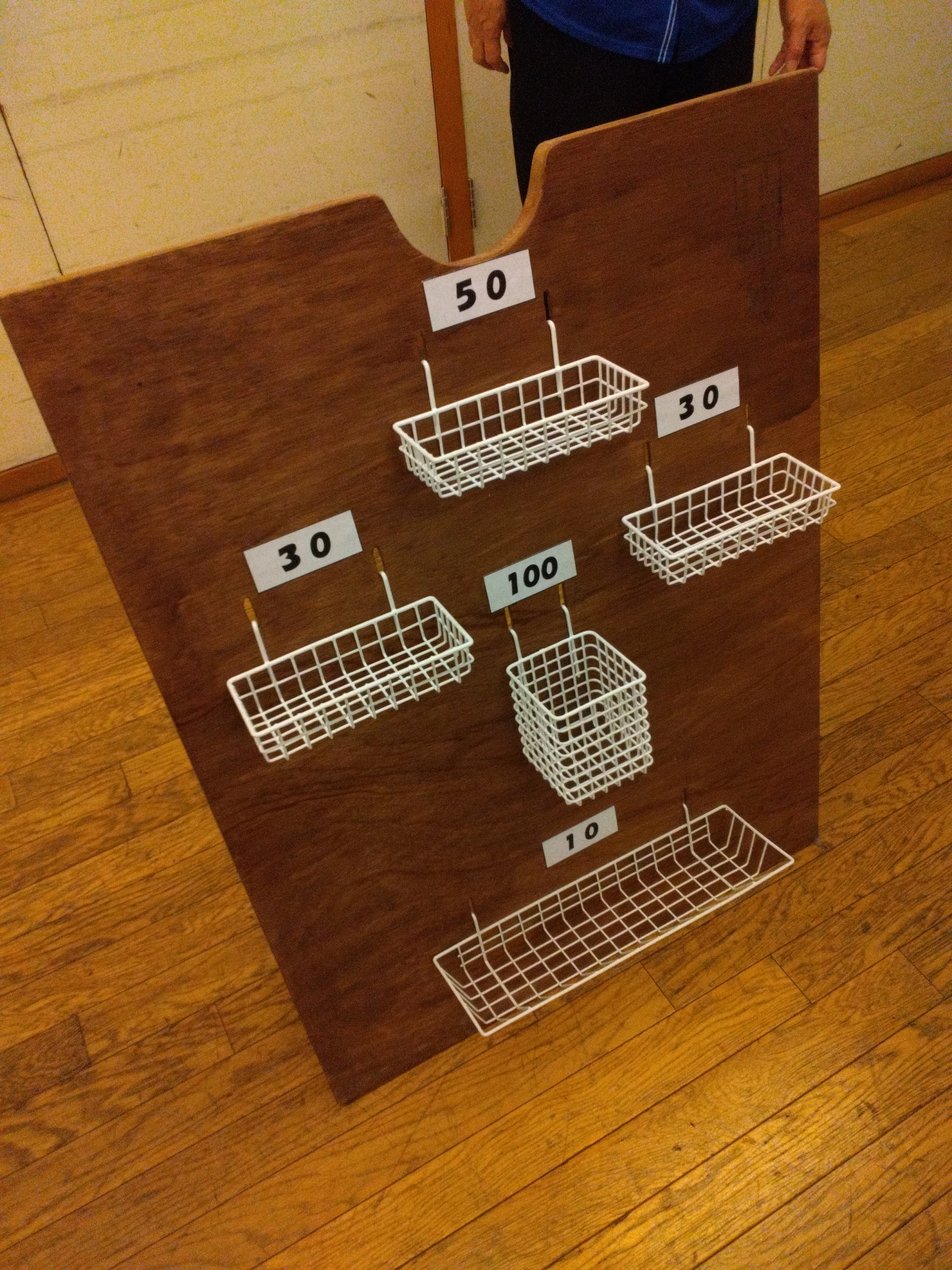 点数のついたカゴにお手玉を投げて入れるゲームです!