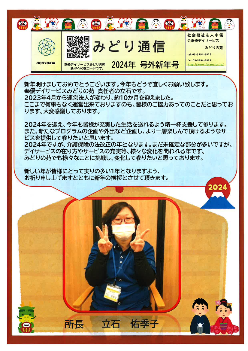【奉優デイサービスみどりの苑】みどり通信号外:新年号発行☆
