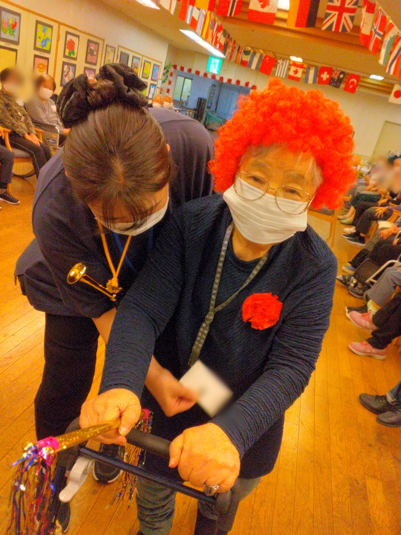 赤組は赤いカツラ!白組は白のカツラをつけてゴールを目指します!