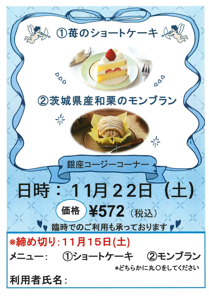 第2弾は「銀座コージーコーナー」のケーキです♪