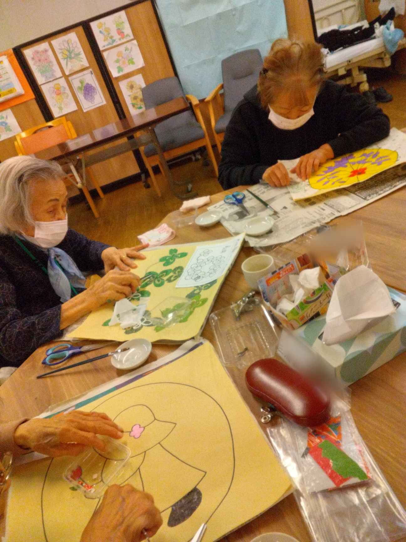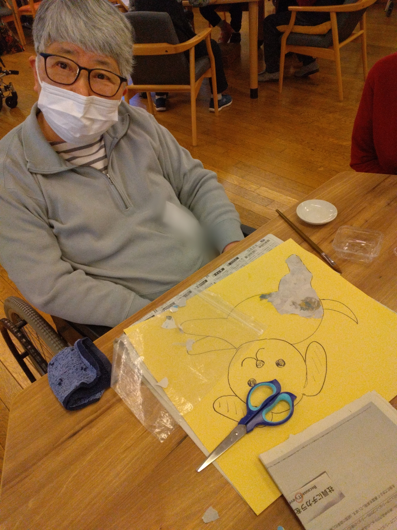選ぶのが楽しいようです♪ 貼り絵や書道はせず塗り絵を