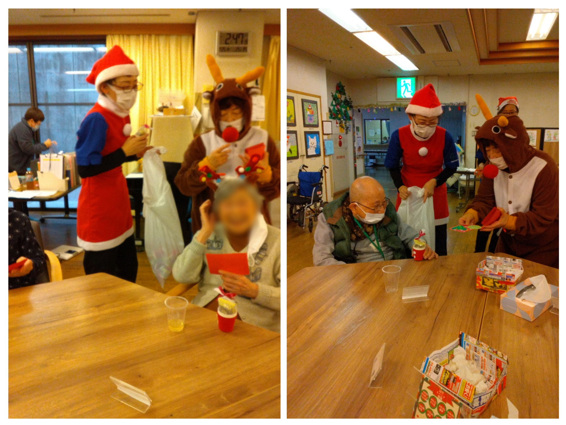 サンタクロースとトナカイに扮したスタッフが皆さんに