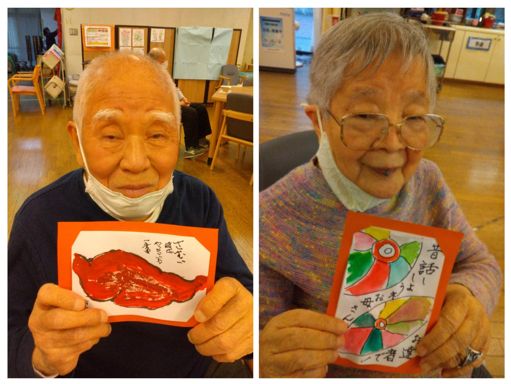皆さんあったかみのある素晴らしい絵手紙に仕上がりました☆