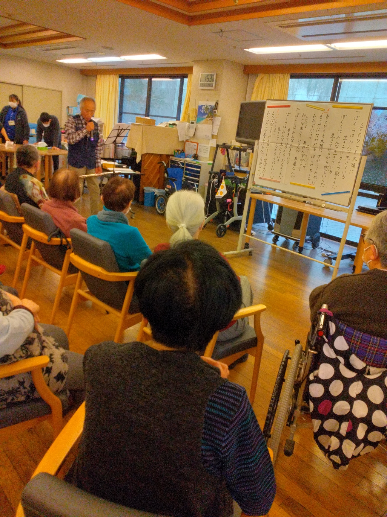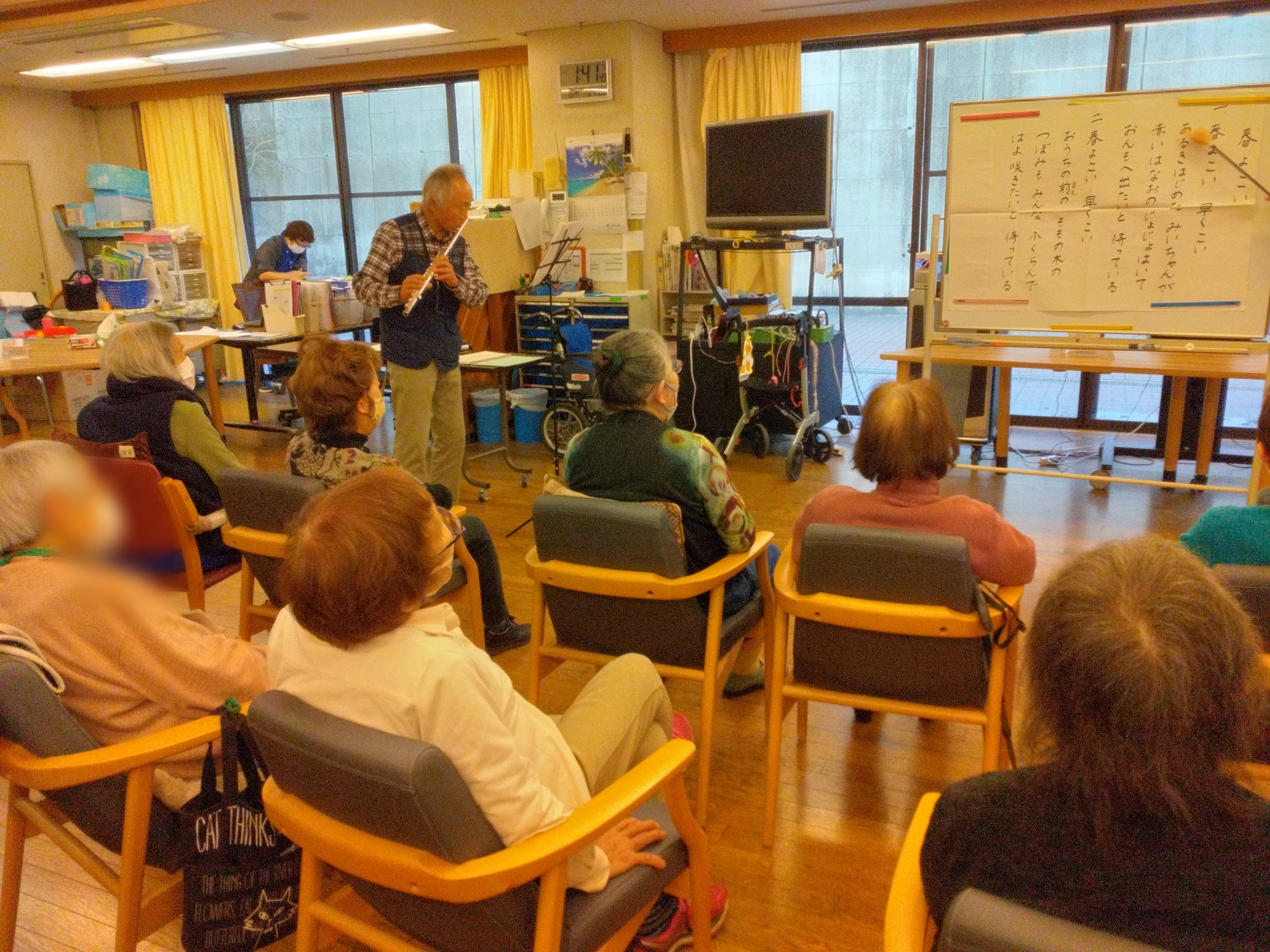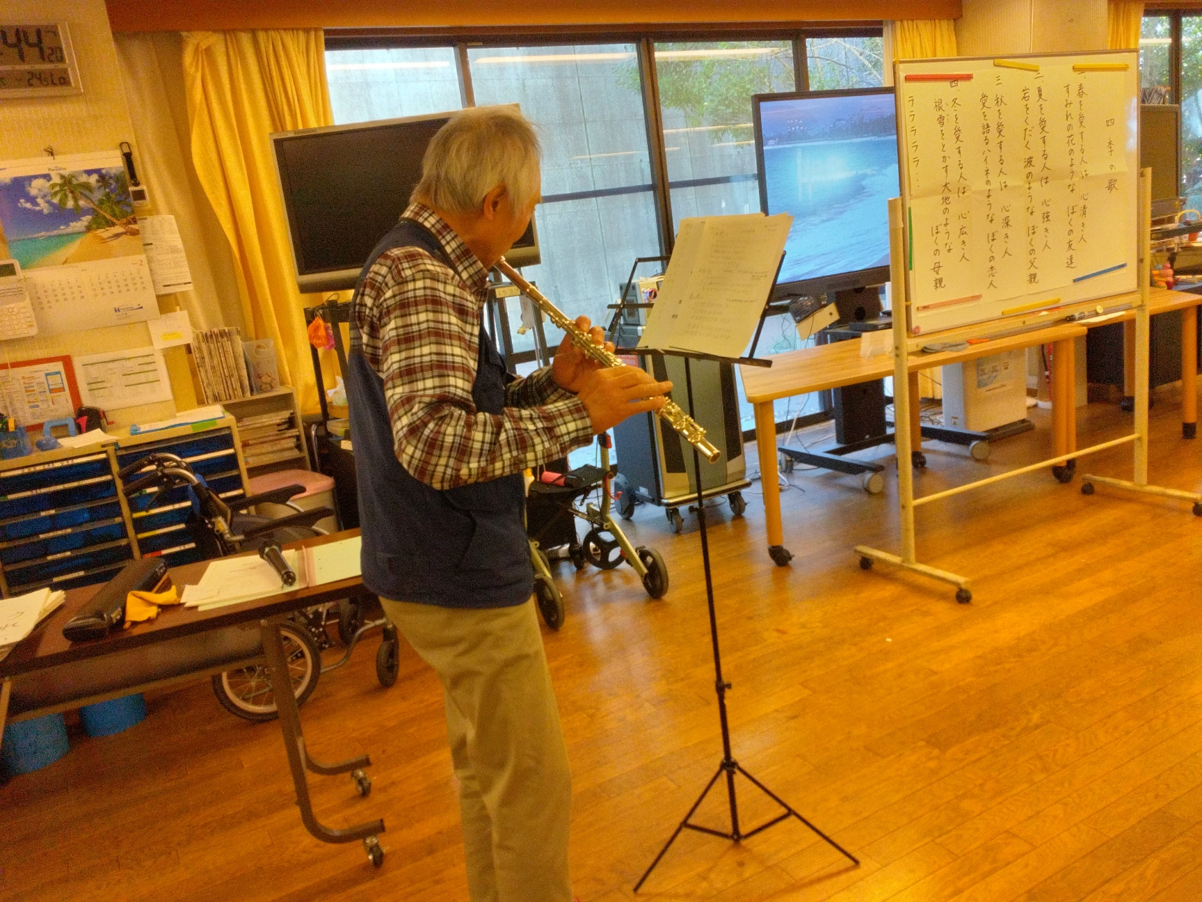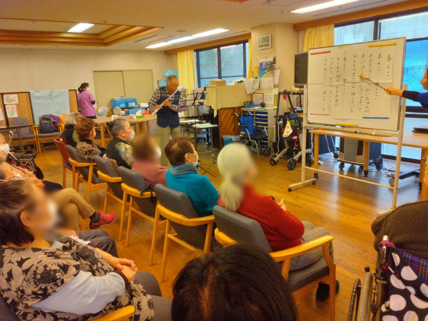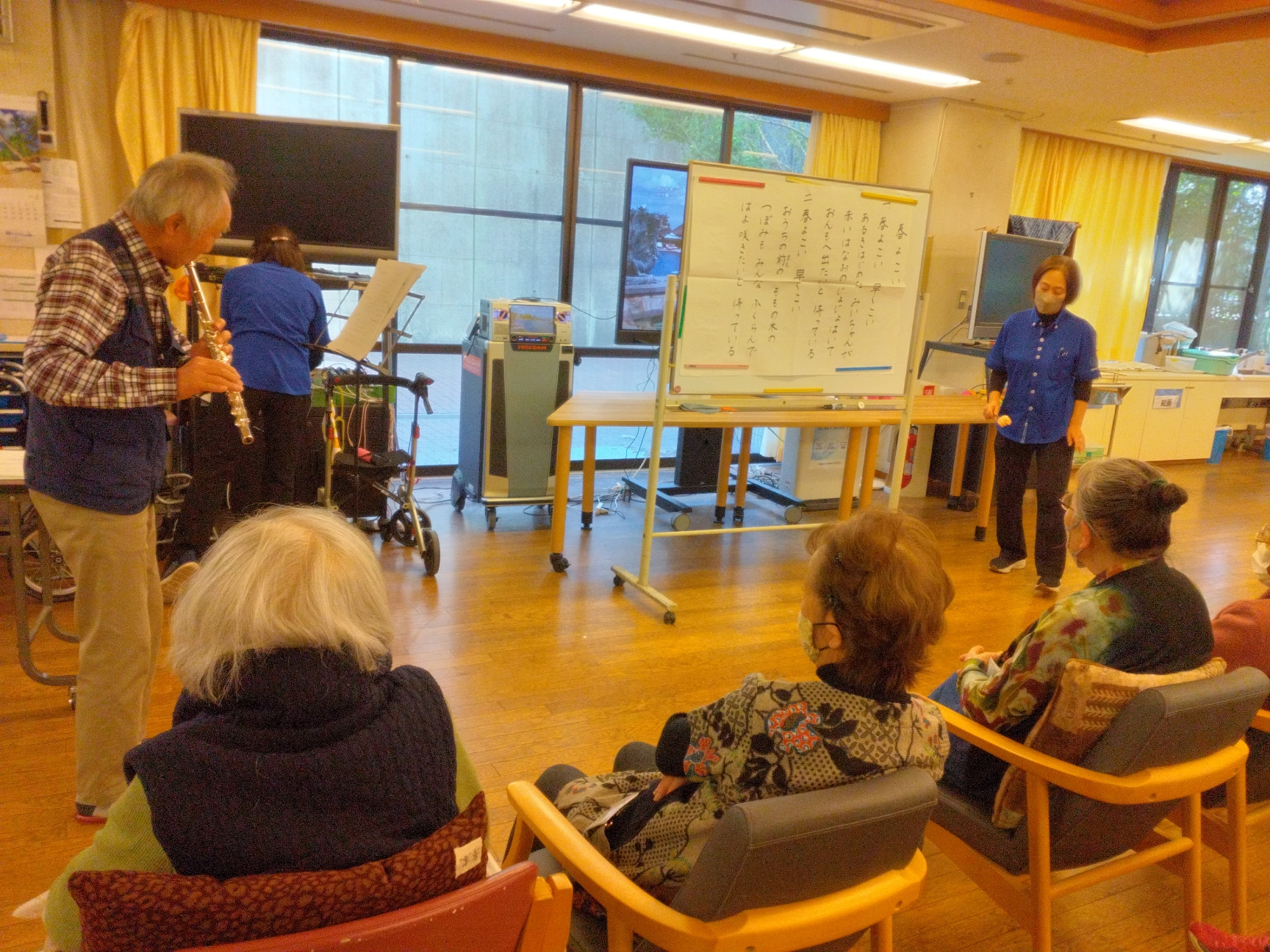 ボランティアの別府さんのフルート演奏に合わせて皆さんで