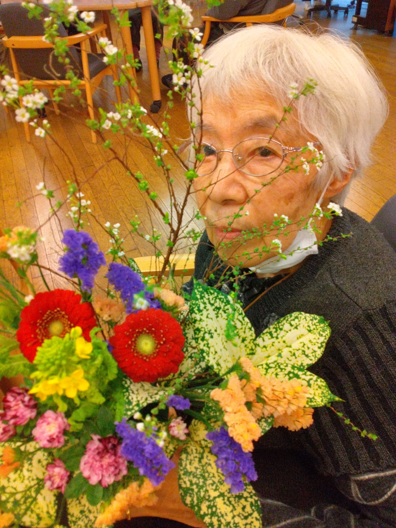 前回の2/20金曜のフラワーアレンジメントの完成の