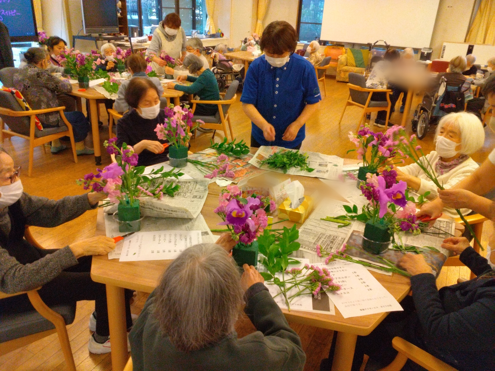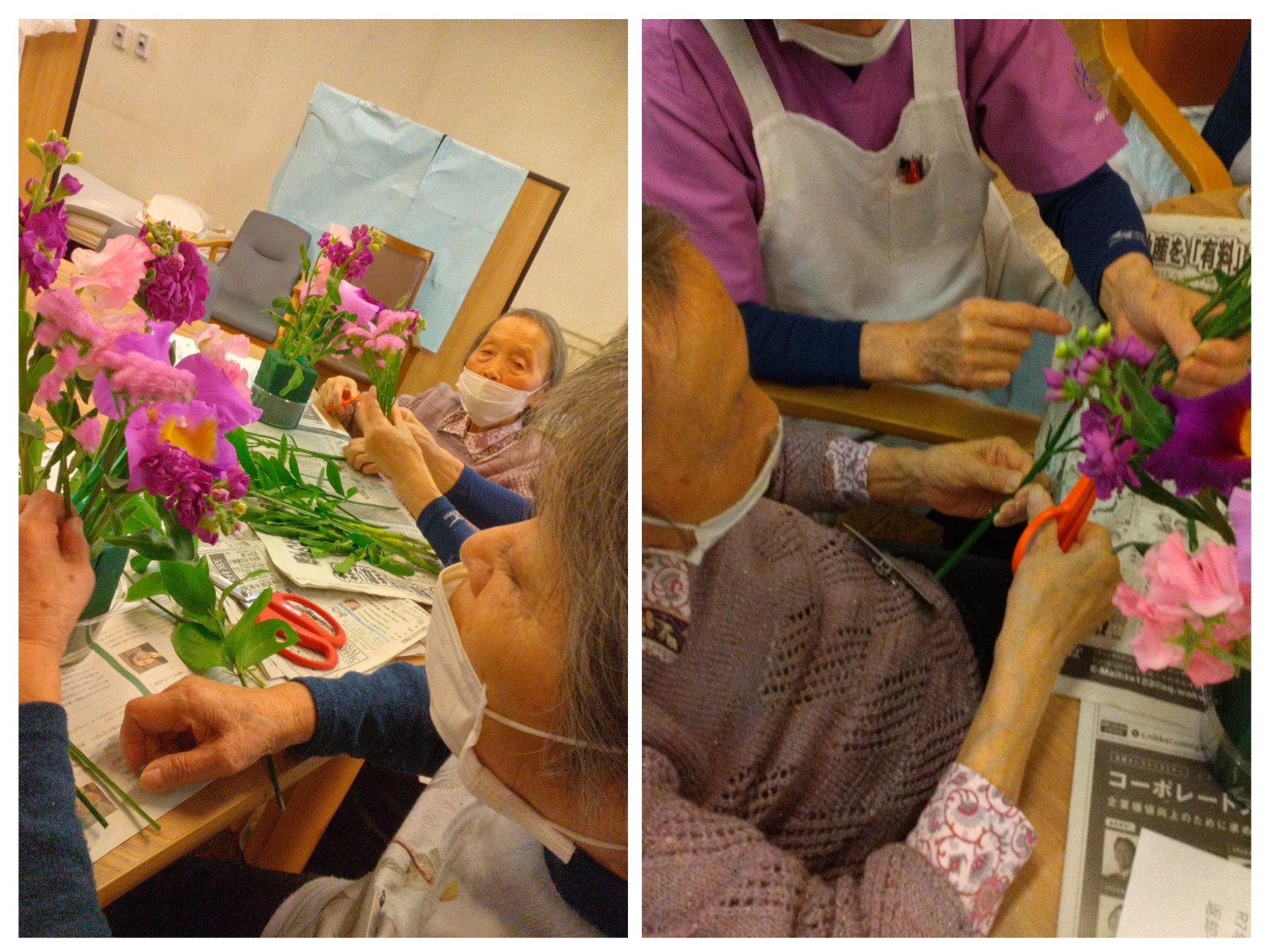 職員たちはお花の長さなど細かく教えて、お手伝いもします。
