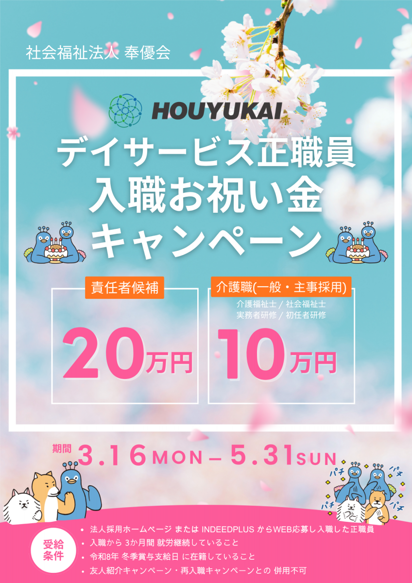【デイサービス正職員 入職お祝い金キャンペーン】