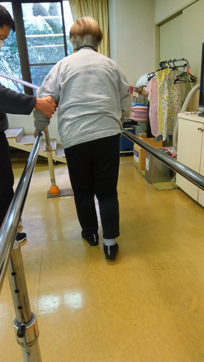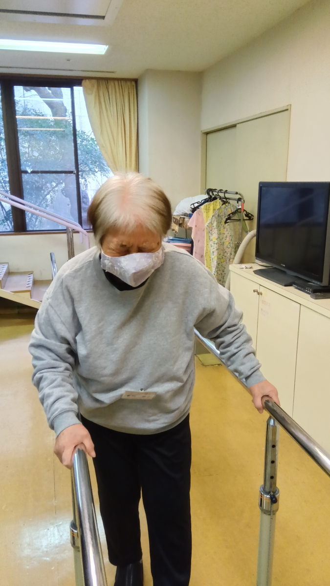 そして、機能訓練に時間では、平行棒で足上げや立位保持バランス保持等行います。