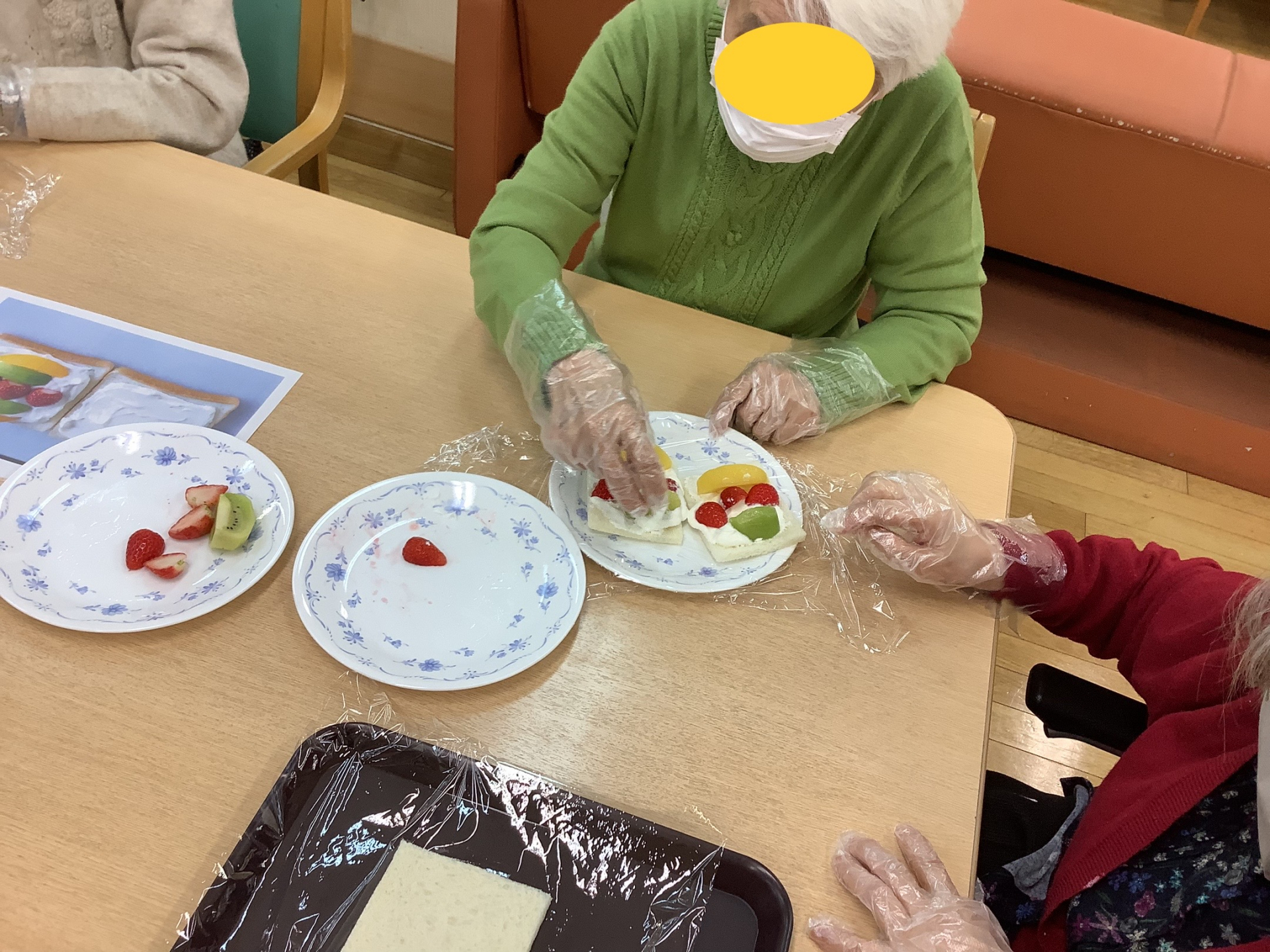 今日は、計10名の利用者さまにフルーツサンド作りに挑戦していただきました!!