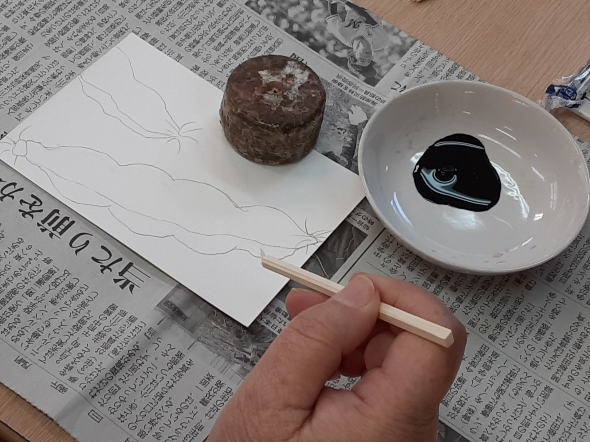今回は、割り箸を使い、味わい深い輪郭を描くことに挑戦しました!!