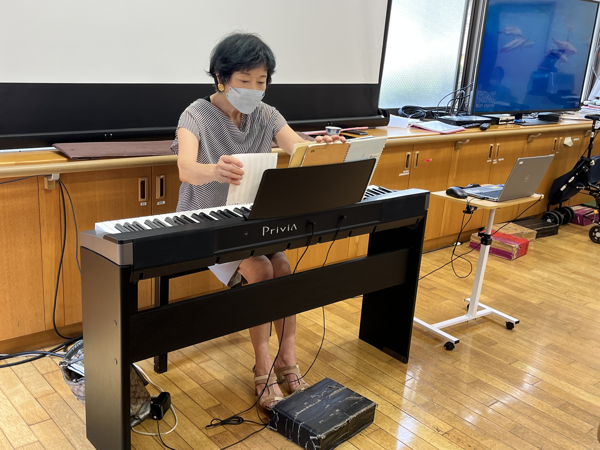 「川の流れのように」や「365歩のマーチ」などの懐かしい曲をピアノの音色に合わせて歌を歌われました。
