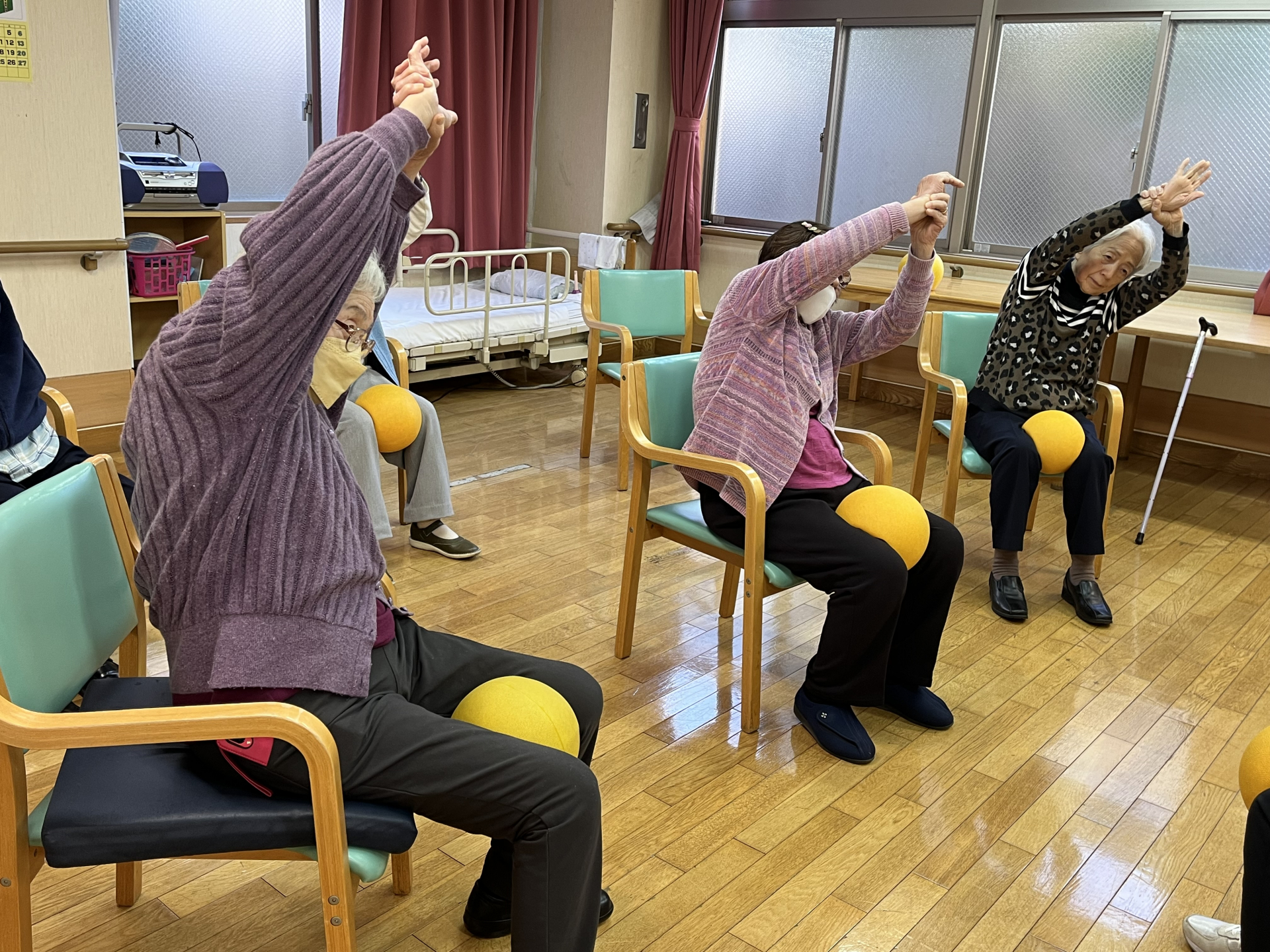 2025.12.05 活動報告 ボランティア体操 Tweet シェアする 本日午後からボランティア講師を交え、ボール体操を開催 ボールを使いながら、上半身から下半身にかけて体を大きく動かされました。 体を動かすことで血行促進や体の筋力の維持向上につながっております! 前の記事 2025.12.05 活動報告 金魚鉢清掃 次の記事 2025.12.03 活動報告 ギター歌会 一覧へ戻る