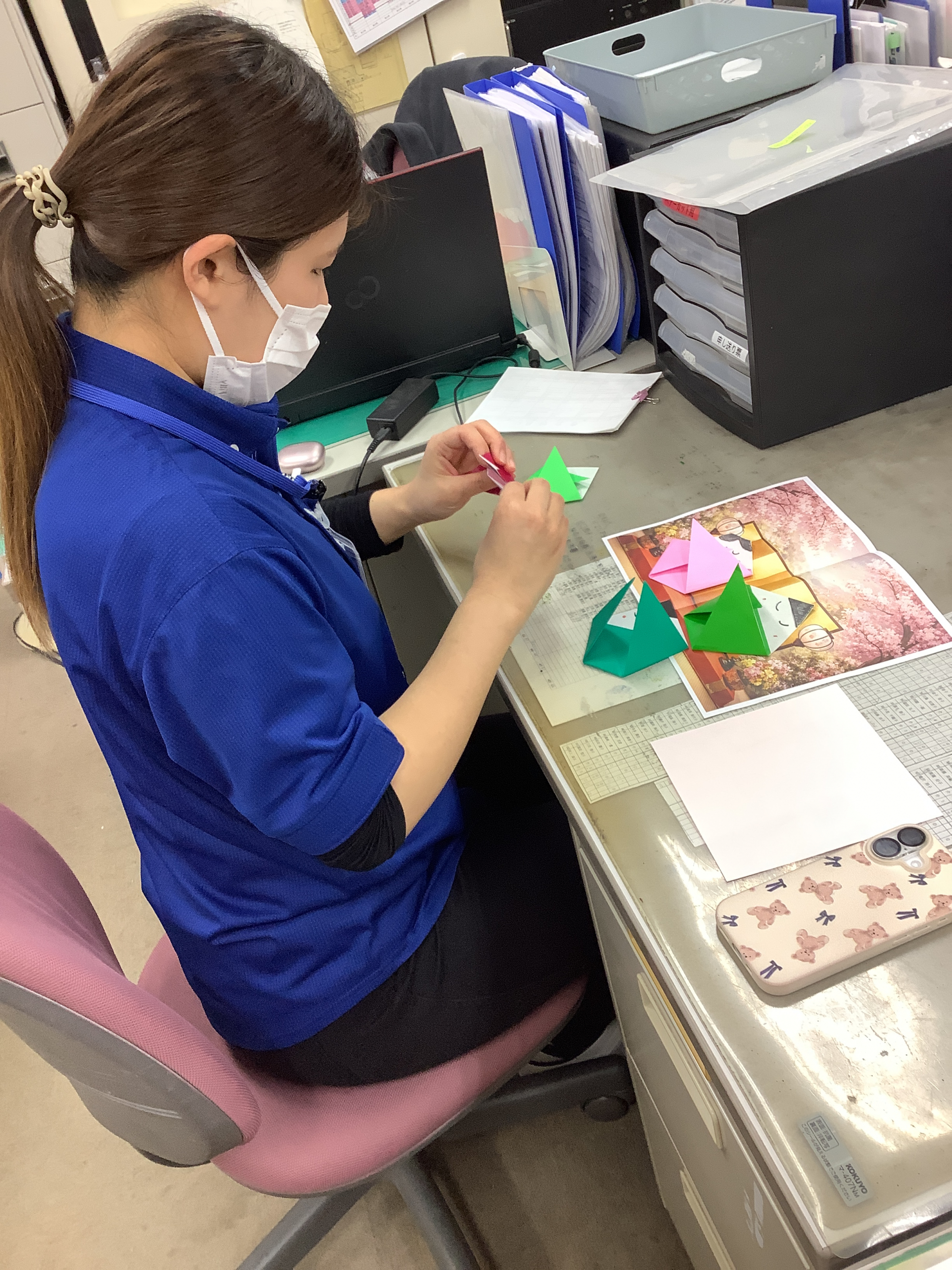 「どの色の折り紙にしようかしら?」