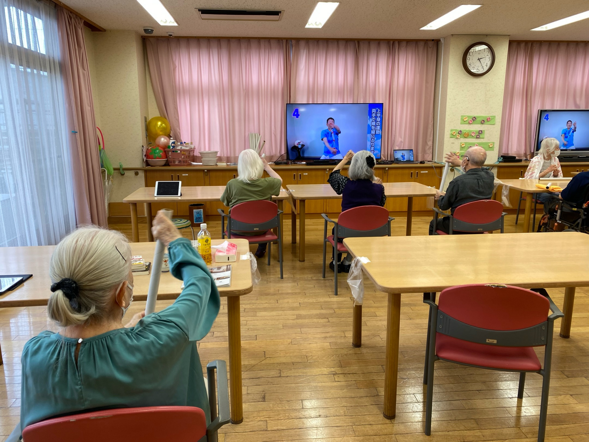 クイズで目がさめた後は棒体操!しっかり体を動かしました。