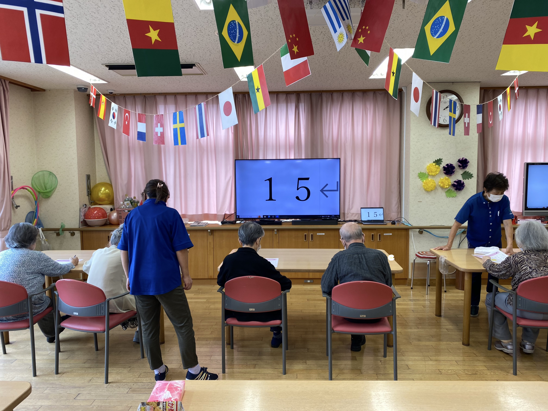 紅茶タイムの前に、レクリエーションで久しぶりの「数字のビンゴゲーム」を行いました。