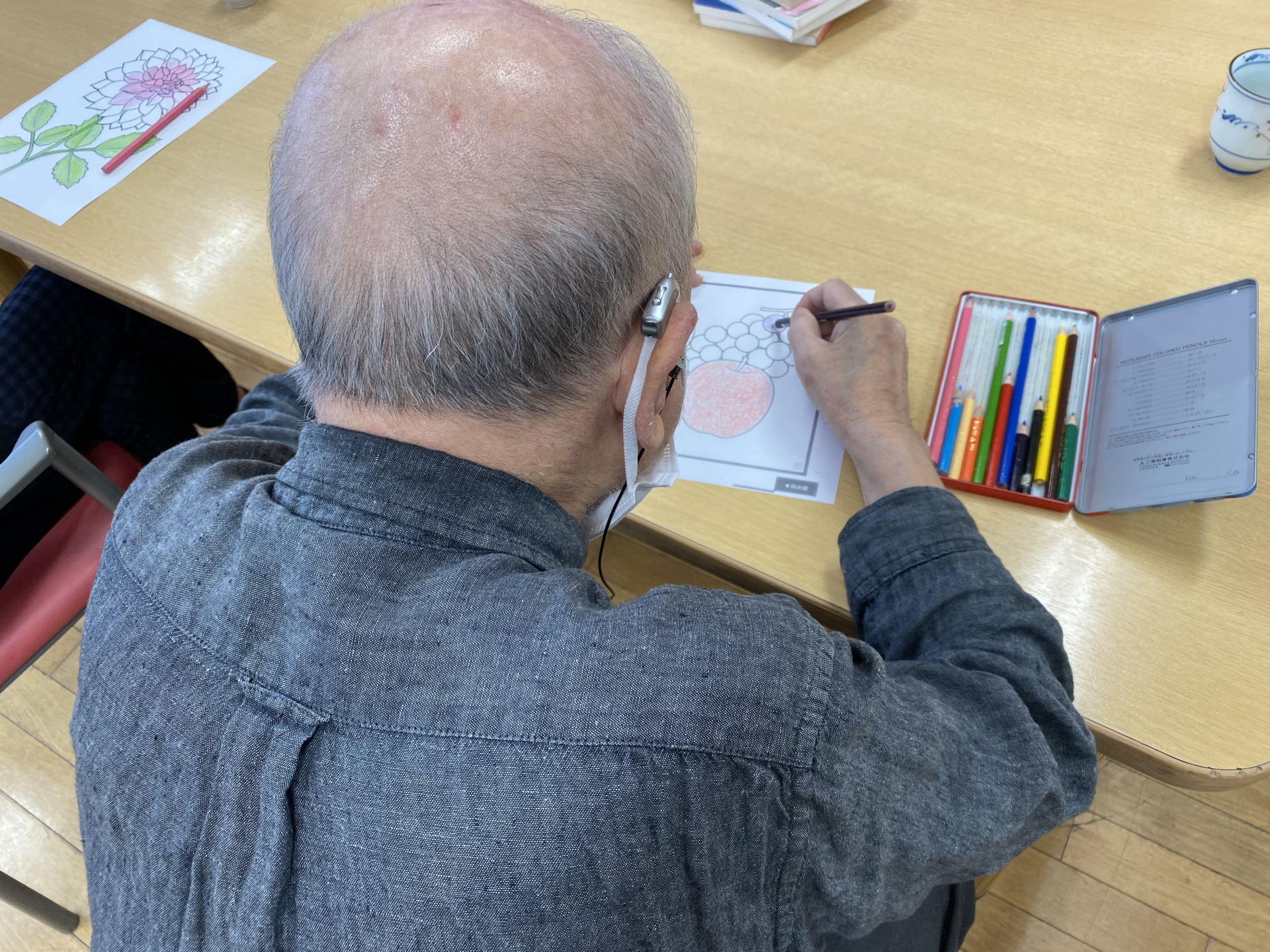 2024.10.16 活動報告 熱心に塗り絵に取り組まれていました〜 Tweet シェアする 昼食後、塗り絵の楽しむ会を行いました。 音楽を聴きながら、ご自分のペースで塗り絵を楽しまれていました!^^ 宮前認知 ムック 前の記事 2024.10.29 活動報告 午後のプログラムのご様子〜 次の記事 2024.10.16 活動報告 午後のプログラムのご様子〜体操・ゲーム! 一覧へ戻る