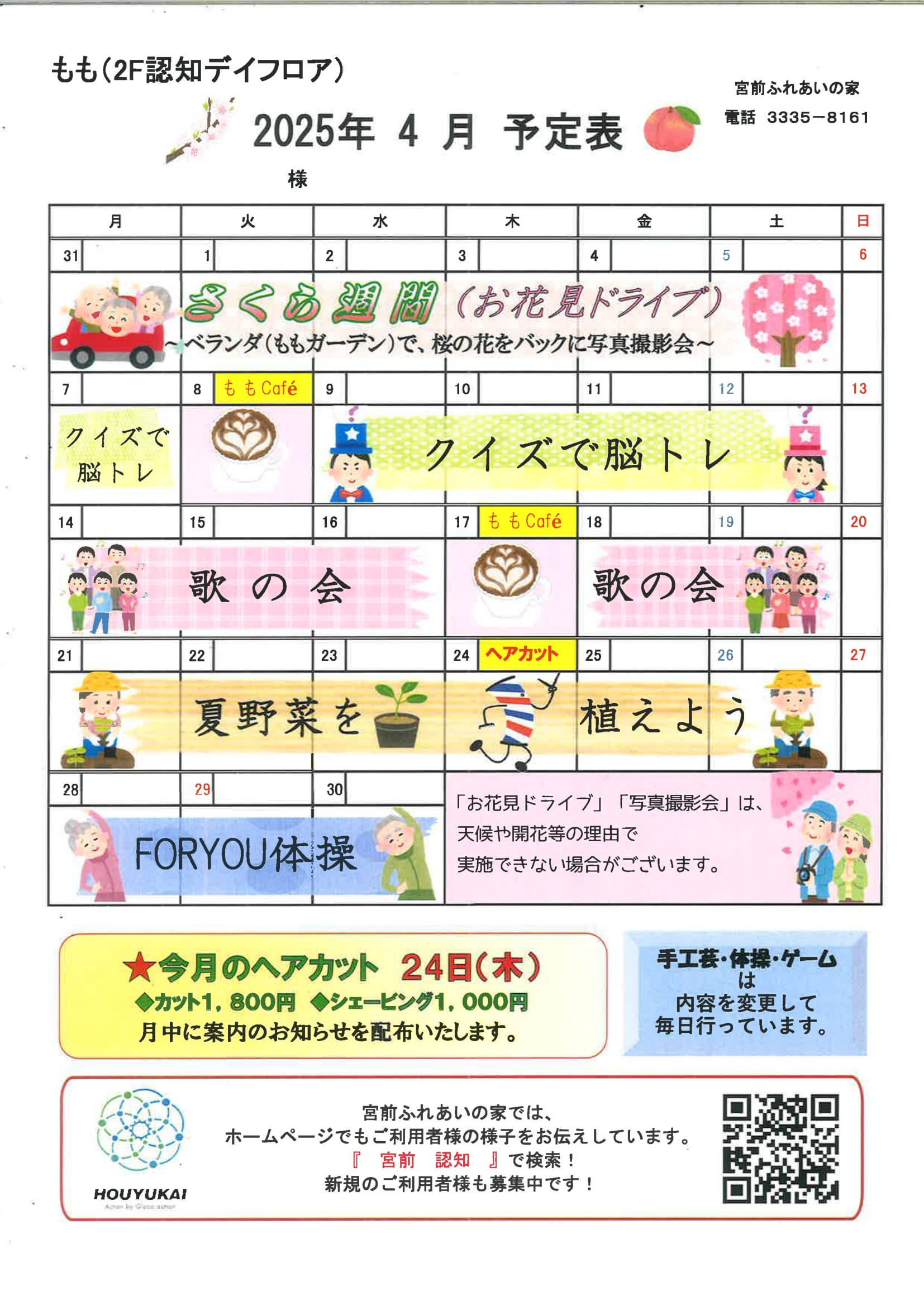 認知デイ、4月の予定表です。