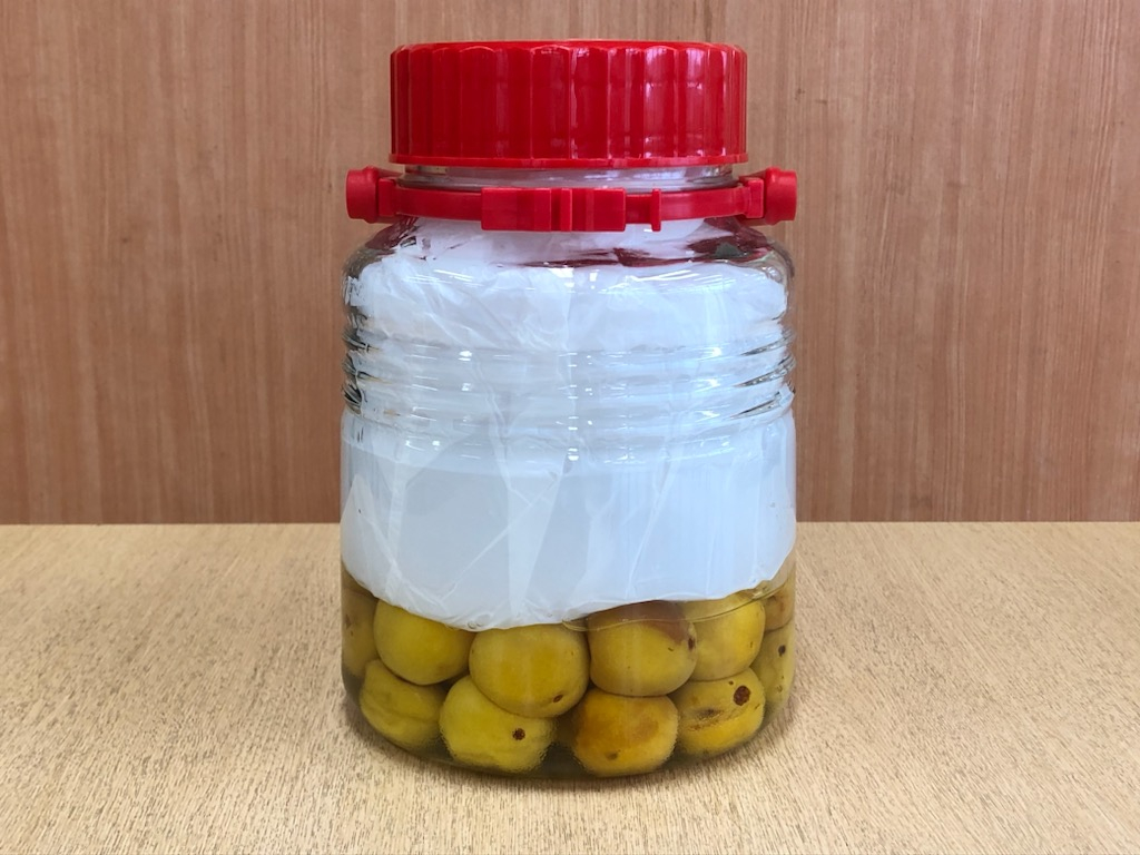 梅が常に梅酢の中に浸かっているように注意しながら重石を調整し、土用干し(天日干し)を待ちます。