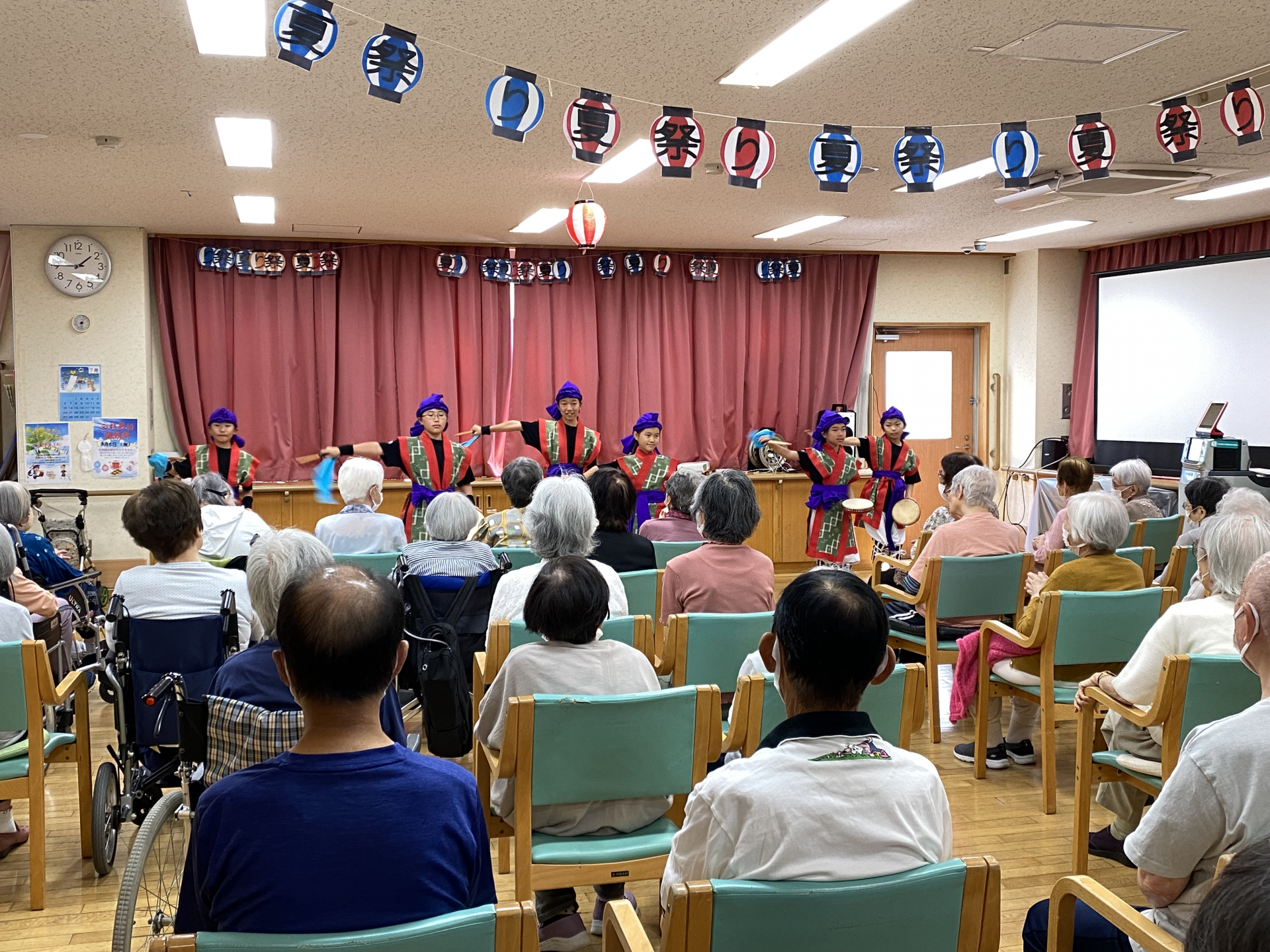 ラストの2曲はエイサー太鼓を数名の利用者様にも叩いていただき盛り上がった演舞会となりました。