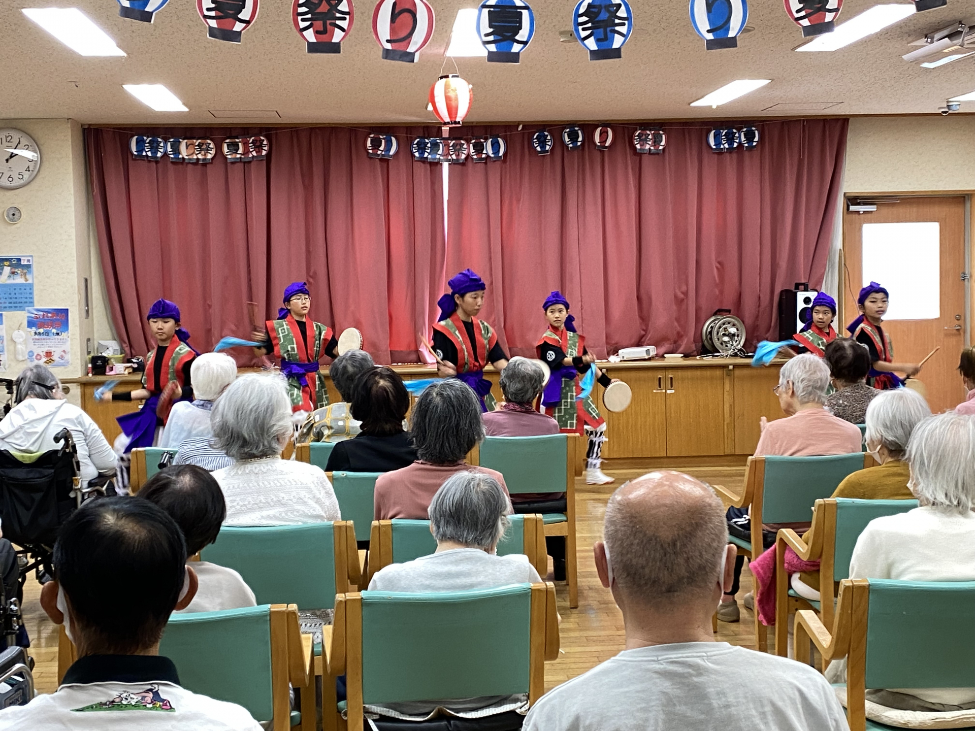 ラストの2曲はエイサー太鼓を数名の利用者様にも叩いていただき盛り上がった演舞会となりました。