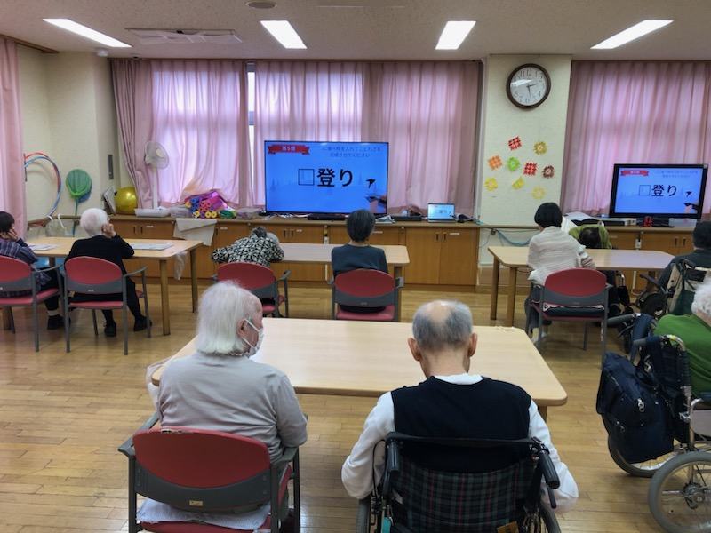 2025.10.27 活動報告 フロアの様子!実況中継!! Tweet シェアする フロアの様子です。 ただいま、YouTubeを使った「脳トレ」に取り組まれています。 生活相談員 S 前の記事 2025.10.28 活動報告 綺麗なお花を摘む 次の記事 2025.10.27 活動報告 ヘアカットサービス 一覧へ戻る