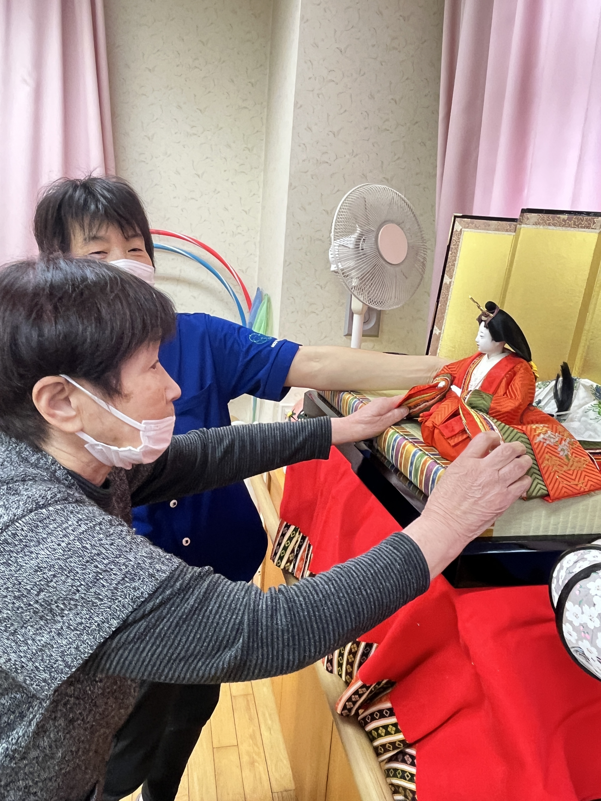 来月3月3日はひな祭り。季節を感じられるレクリエーションとしてお雛様飾りを行いました〜