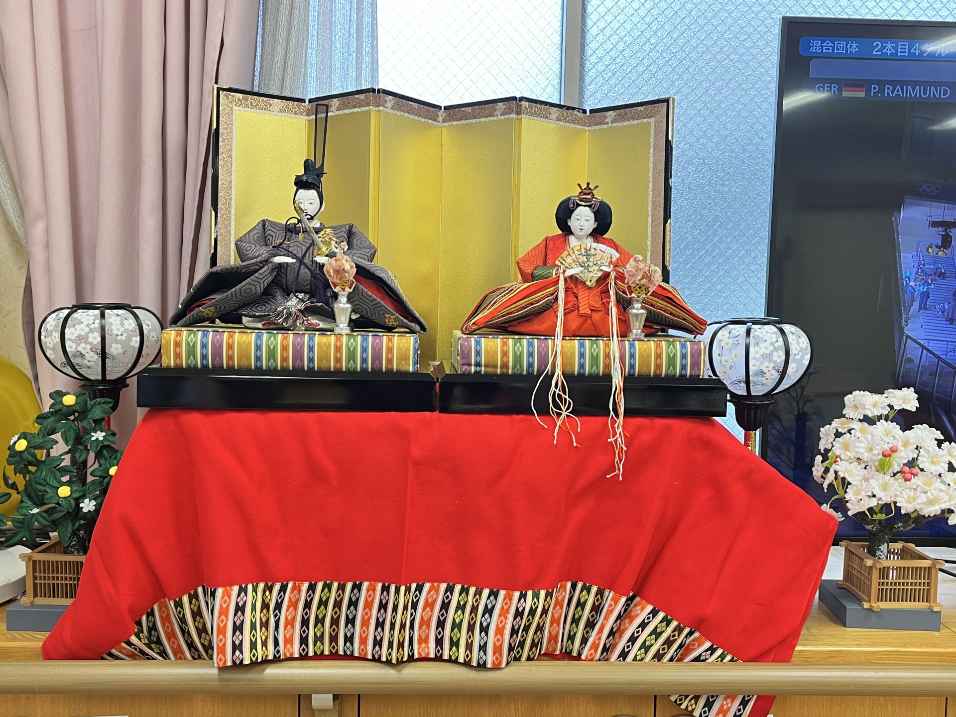 利用者様でぼんぼり、お花、お花、お王様、お姫様など飾りました〜