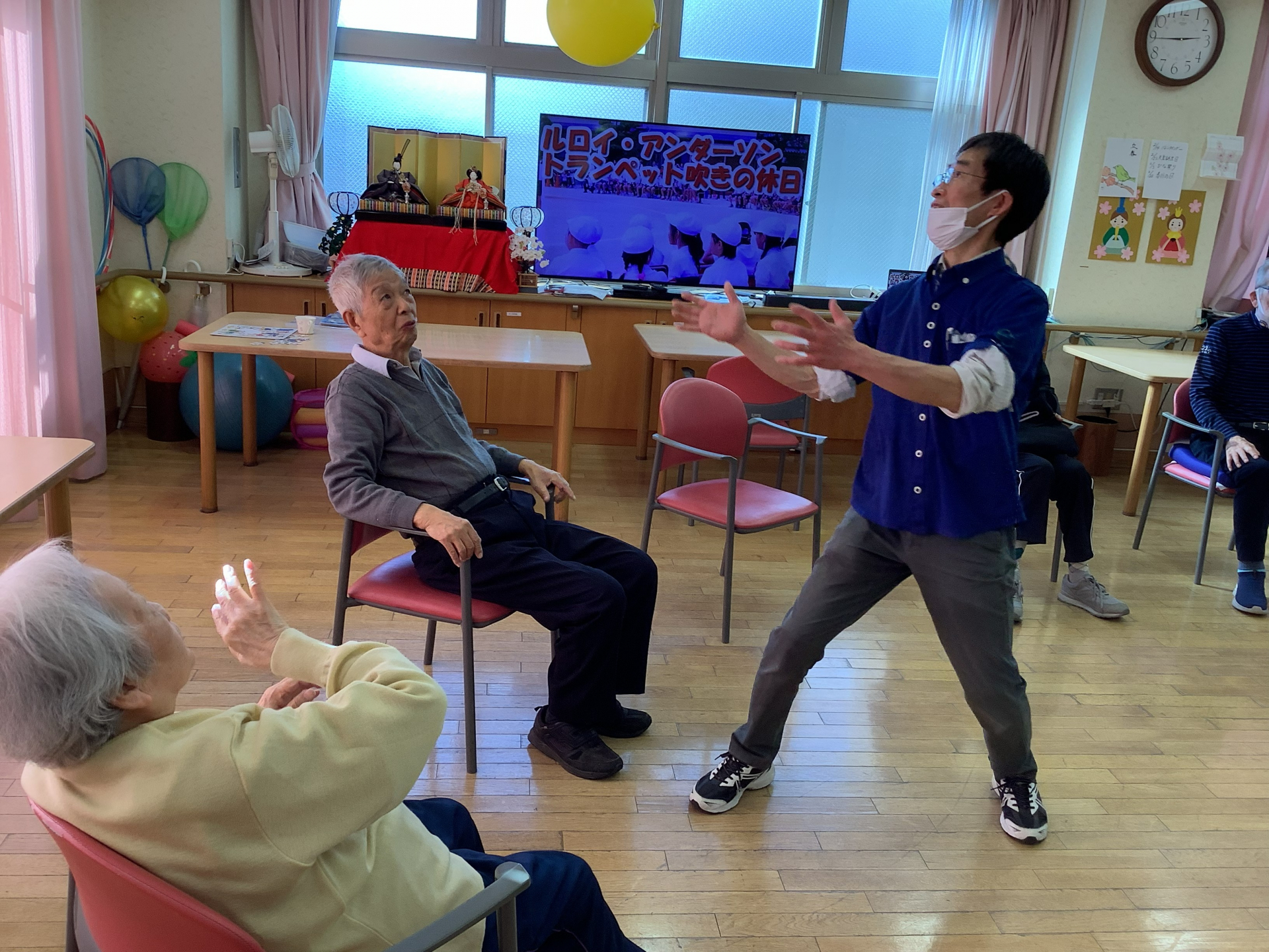 午後からは職員と一緒に風船バレーや棒体操を行いました。