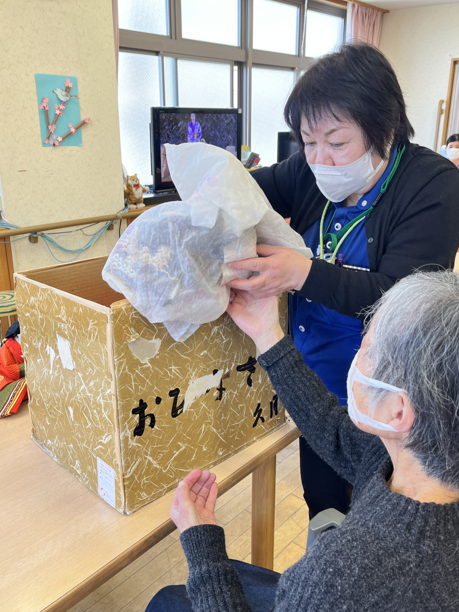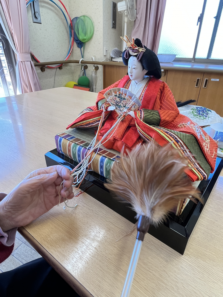 昨日、楽しくおひな祭りをお祝いして行いました。記念写真を撮って、特別にお菓子を召し上がれました。本日、ひな祭りも終わりですから、ご利用者と職員はひな人形を一緒に片付けて頂きました!