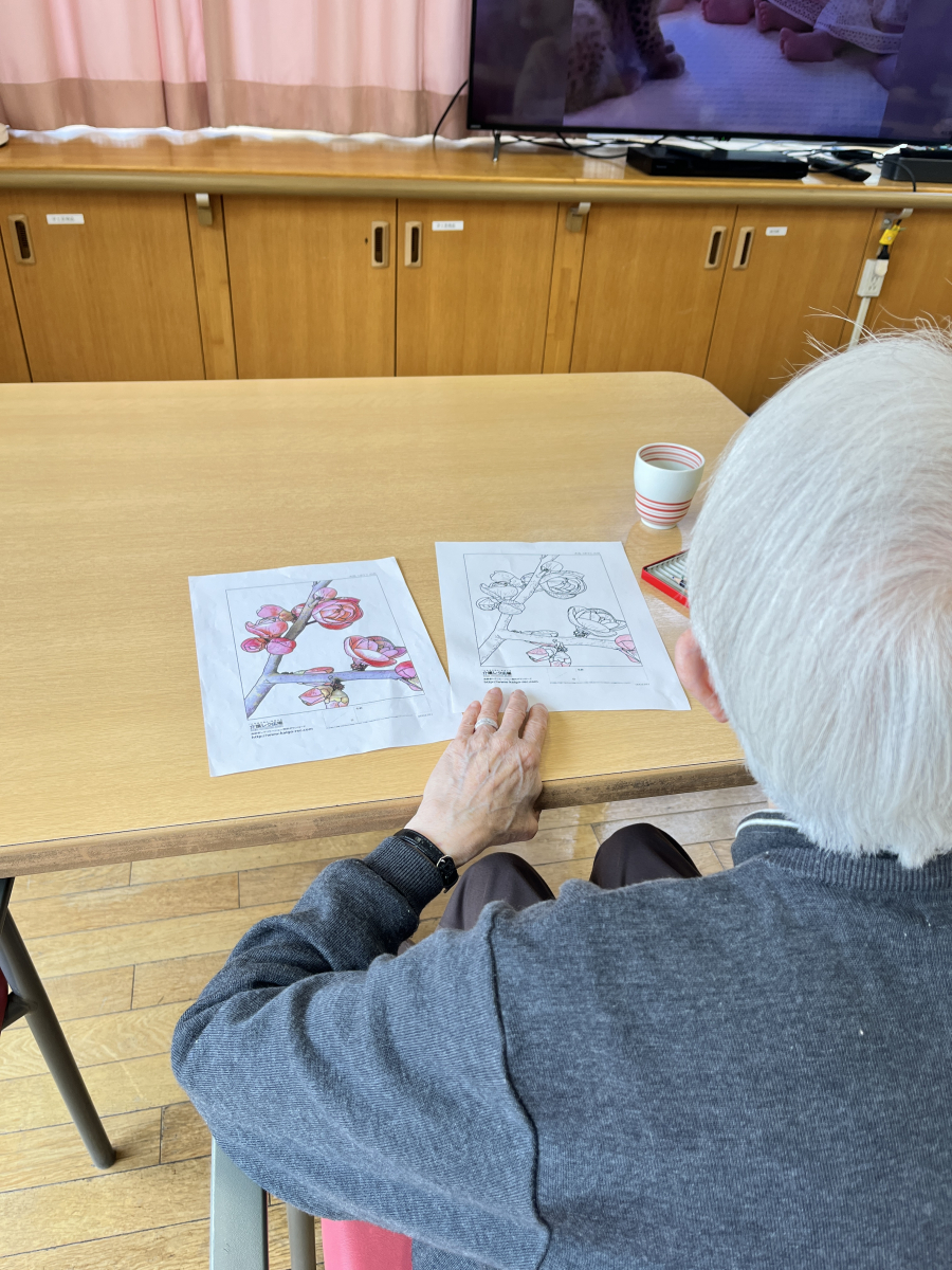 テレビを見ながら塗り絵をします。とても綺麗に塗れました