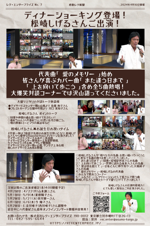 2025.03.10 【仲町在セン】オンラインレク~中田亮さんに昭和歌謡コンサート~ 活動報告 #奉優会 #仲町高齢者在宅サービスセンター #板橋区 #デイサービス #高齢者施設 #オンラインレク #昭和歌謡コンサート #中田亮さん 2024.10.09 【仲町在セン】オンラインコンサート♪ 活動報告 #仲町高齢者在宅サービスセンター #奉優会 #昭和歌謡コンサート #オンラインレク 2024.04.16 【仲町デイ】松崎しげるさん、オンラインコンサート♪ 活動報告 #奉優会 #仲町高齢者在宅サービスセンター #オンラインレク