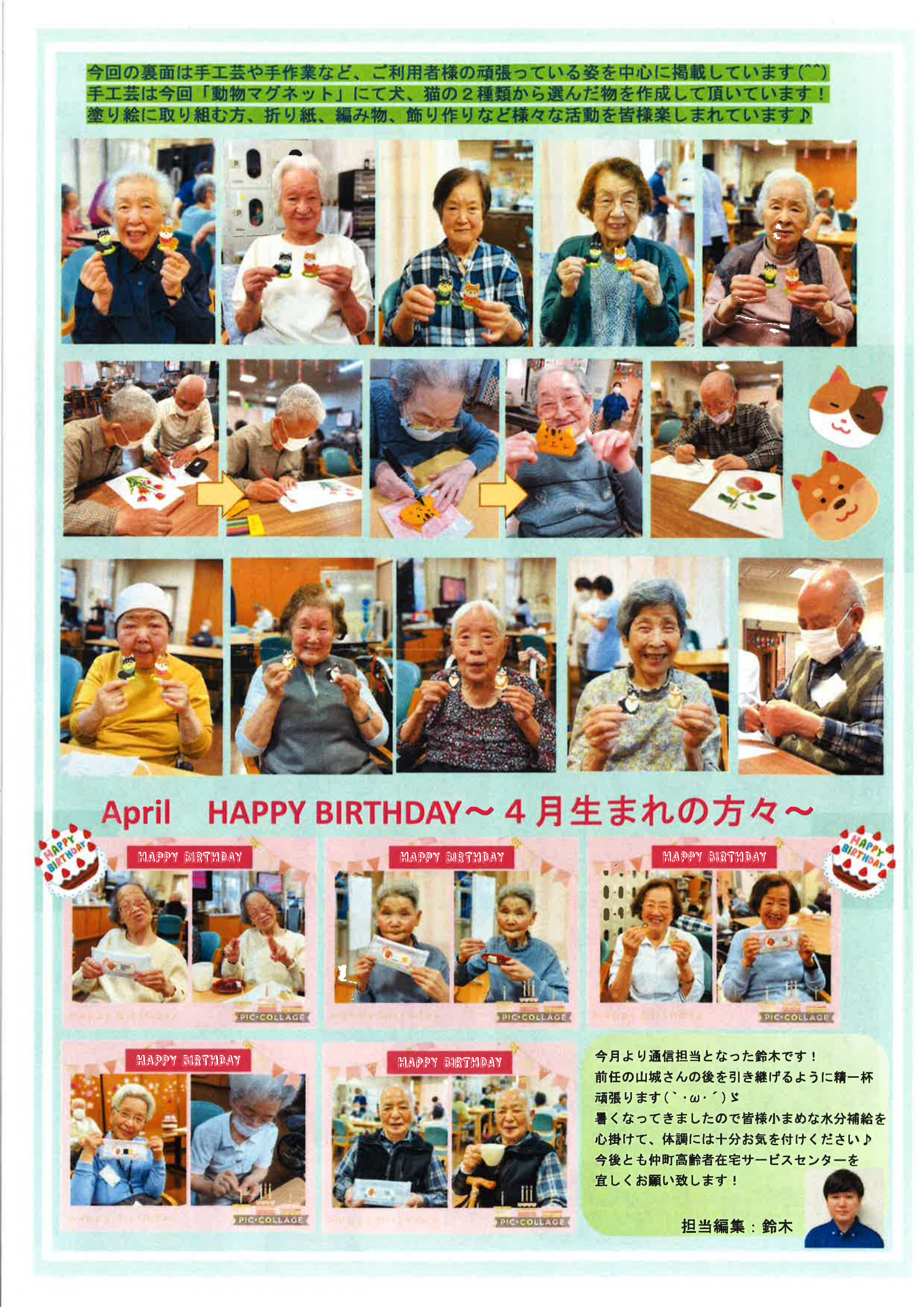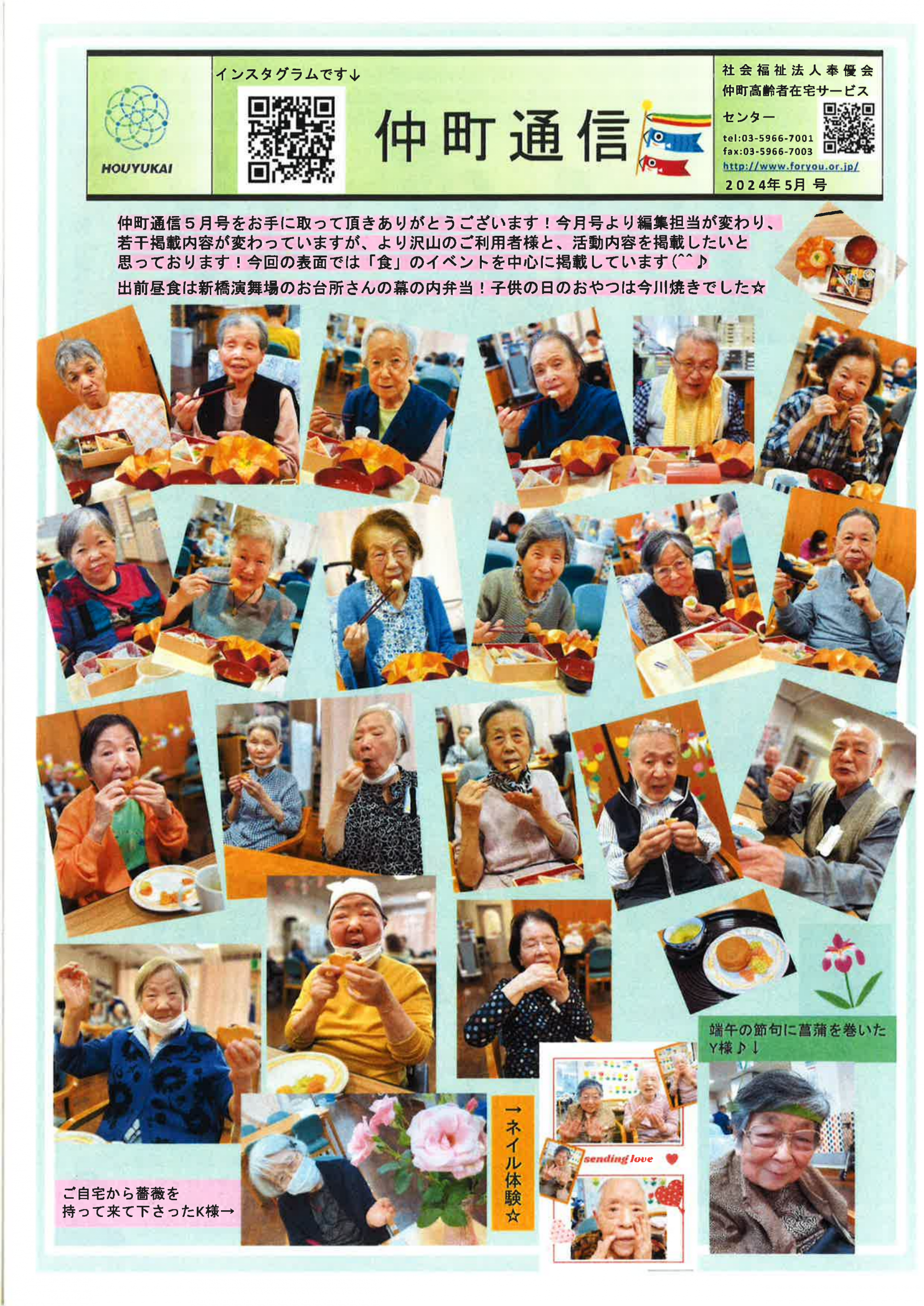 遅くなってしまいましたが、仲町通信5月、ご利用者様へ発行しております☆