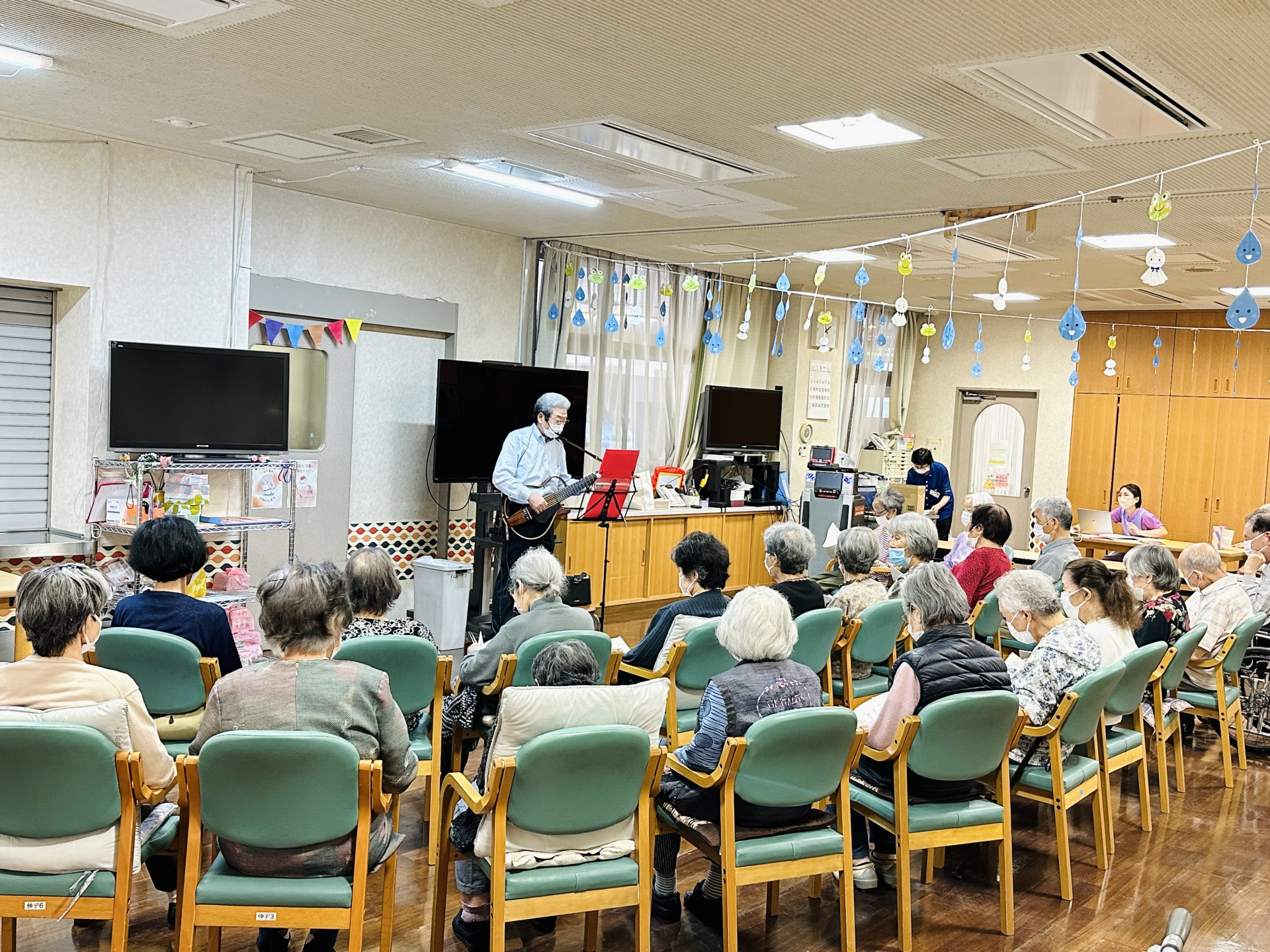 昭和の懐かしい楽曲をギターの音色と、ボランティア様の優しい歌声で楽しみながら、