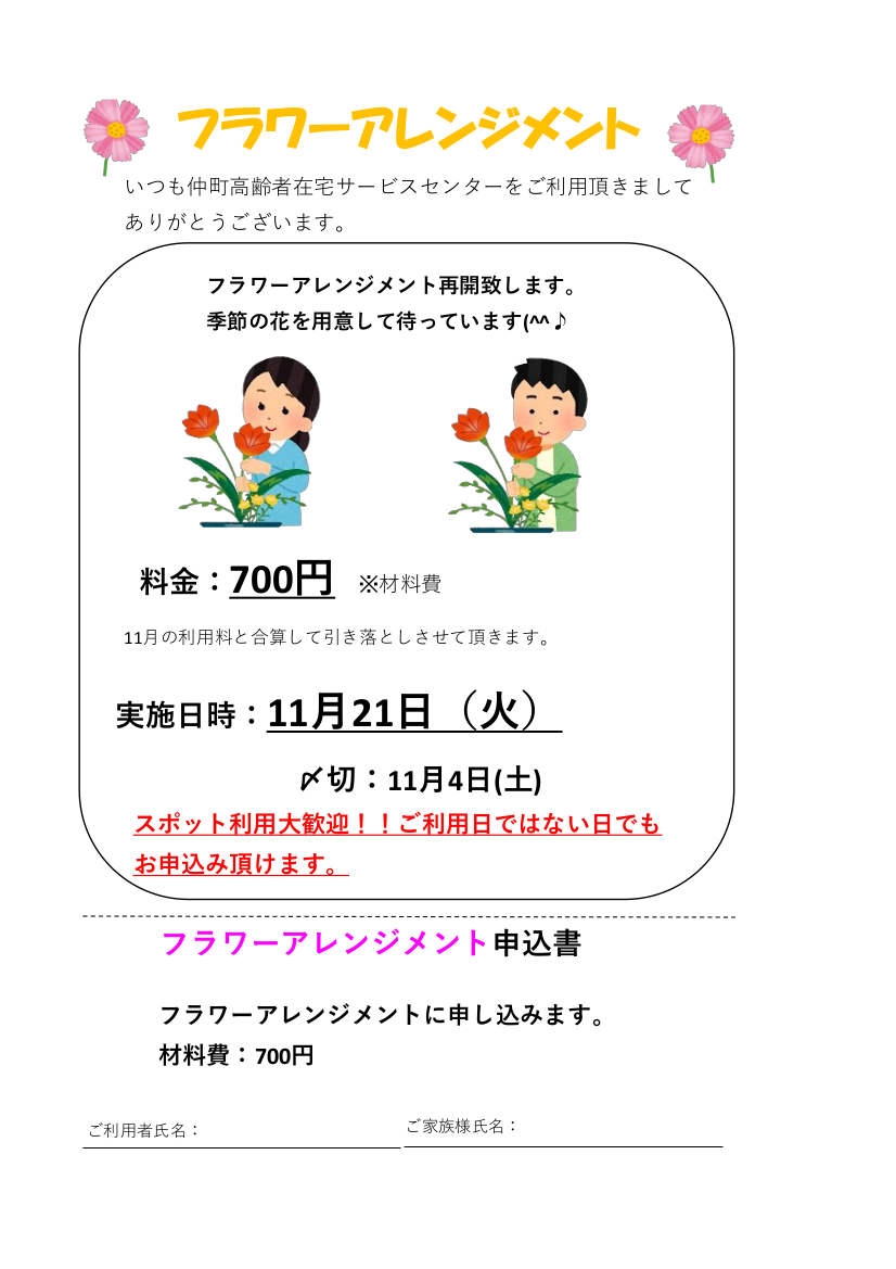 フラワーアレンジメントのお知らせです!!