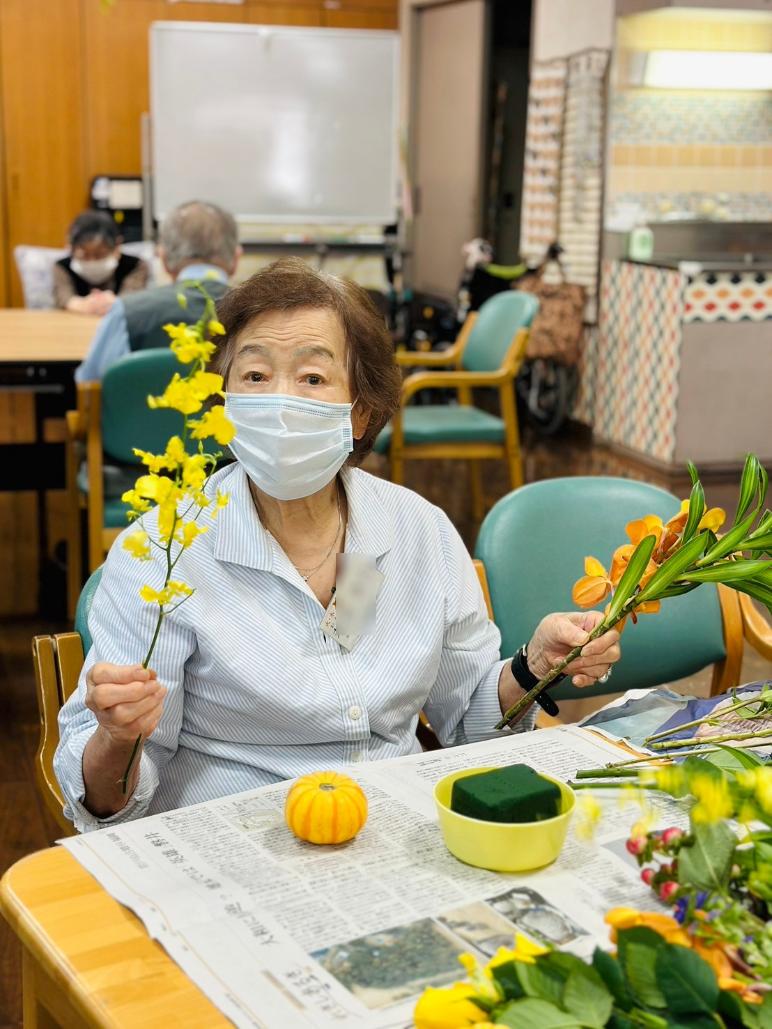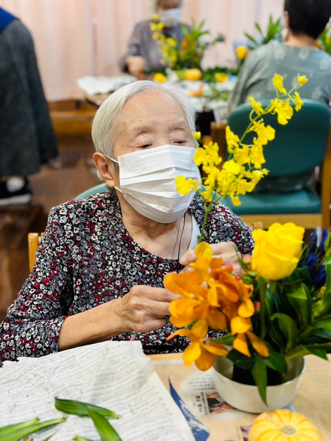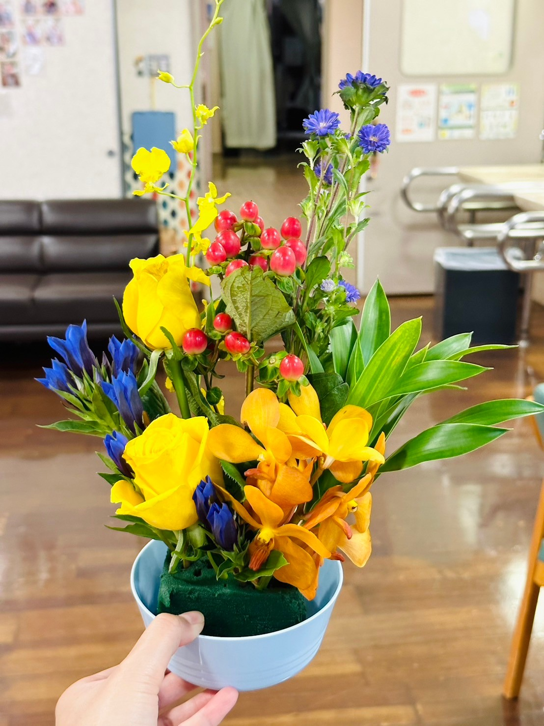 先日、先生をお招きし、フラワーアレンジメントを行いました(^^♪
